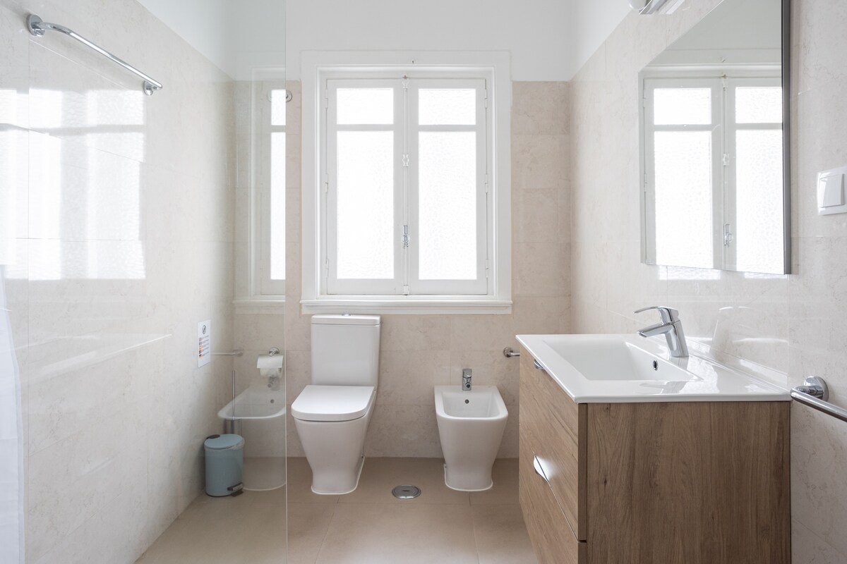 It's a 140 m2 charming apartment with a beautiful wood floor, with a bright living where you will find a double size sofa-bed, TV and Wi-Fi. One dining room. Two large double bedrooms with super king size beds. One large room with two single beds, with a nice view from the balcony and another room with a single bed. Two spacious bathroom with amenities available. Towels and linen are freshly washed for you.You can also enjoy having a meal in a very nice glass veranda.