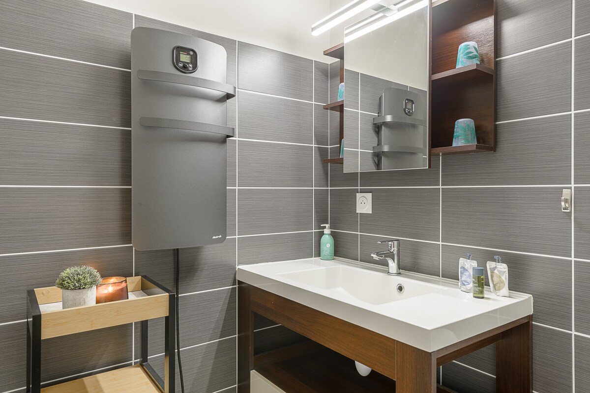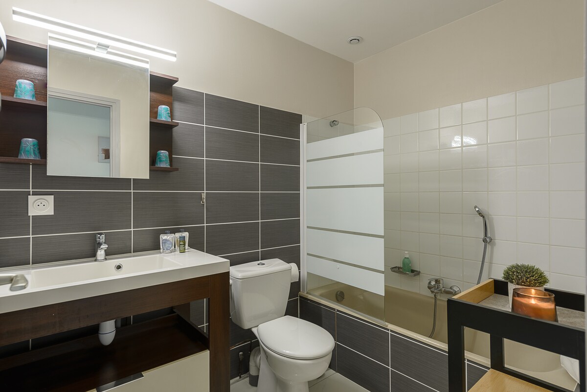 - Fully equipped American kitchen (oven, dishwasher, Tassimo coffee machine, boiler, toaster, washing machine...)