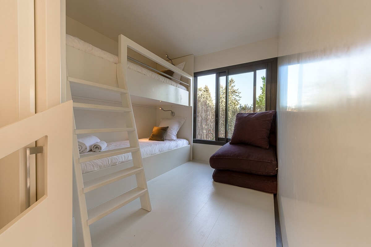 - One cabin-bedroom with bunk bed (80x200 each), closed by a sliding door