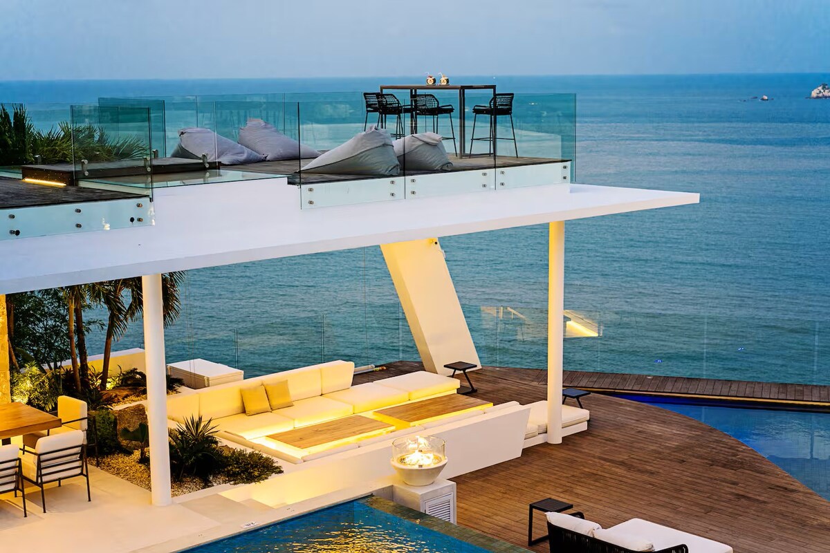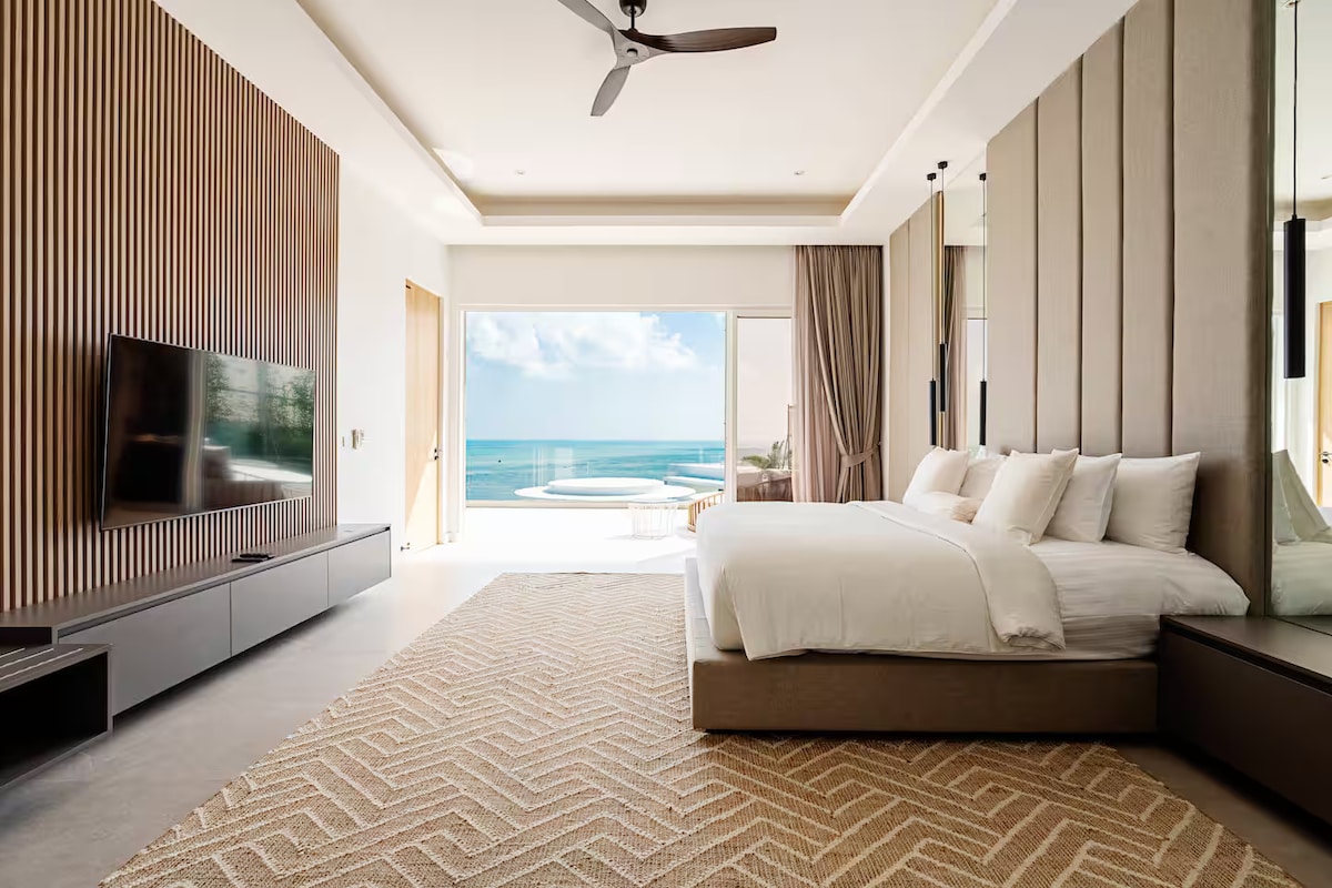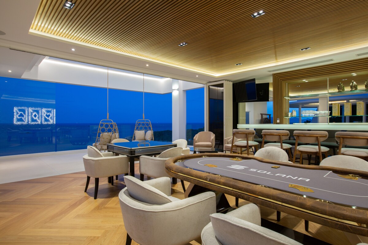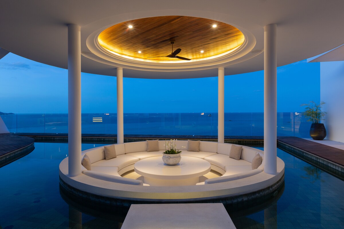 Designed with both aesthetics and comfort in mind, Villa Solana seamlessly blends sleek modern lines with warm Asian accents. The interiors are open, airy, and filled with natural light, with floor-to-ceiling windows framing uninterrupted ocean vistas. Inside, you’ll find a mix of serene private spaces and vibrant social areas—from a plush indoor lounge to an entertainment zone that includes a private cinema, games room, gym, and sauna.
