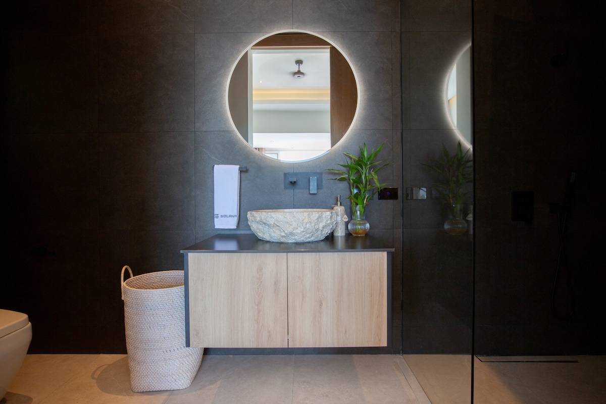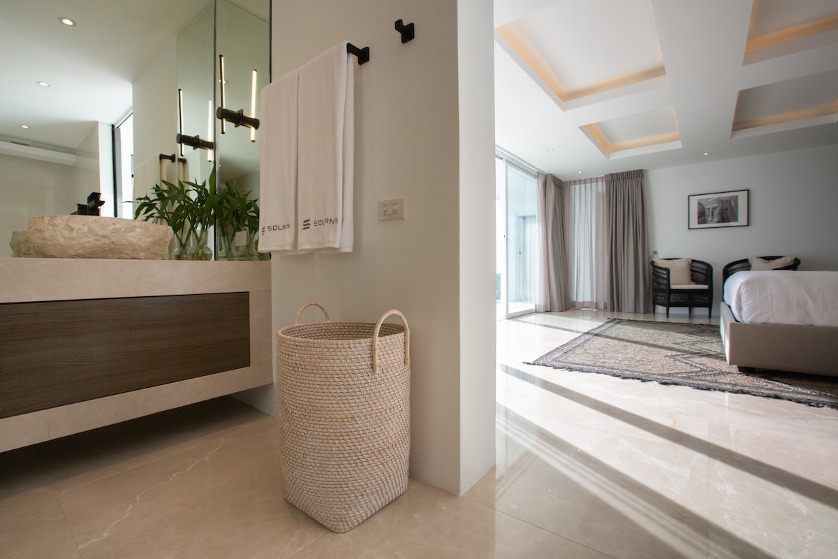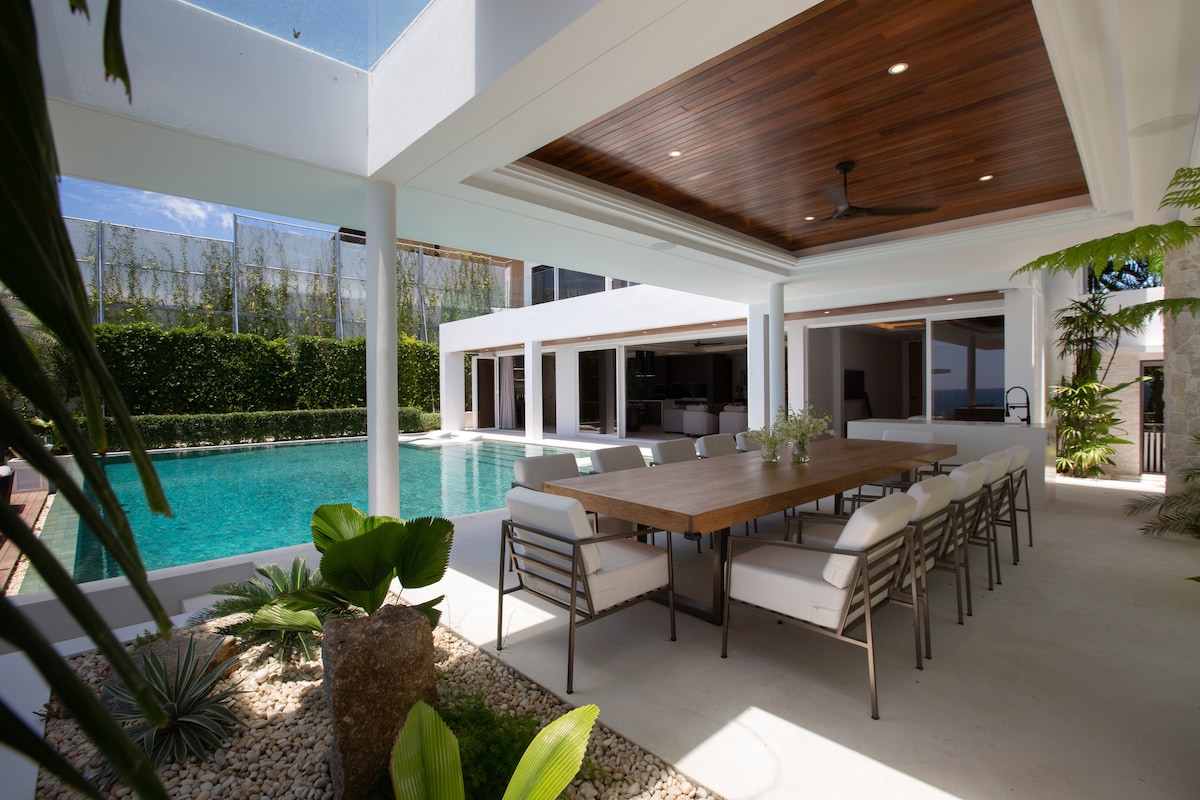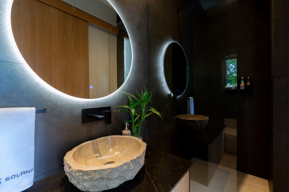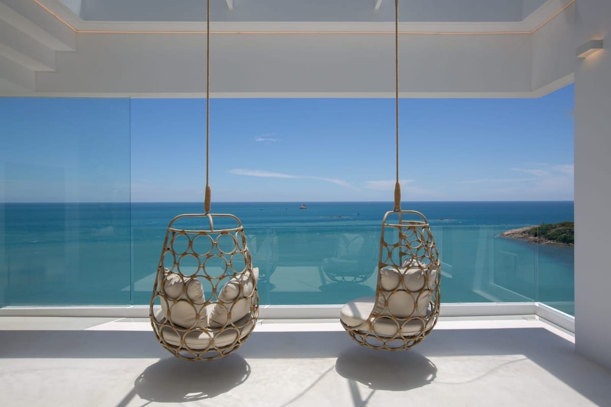 Designed with both aesthetics and comfort in mind, Villa Solana seamlessly blends sleek modern lines with warm Asian accents. The interiors are open, airy, and filled with natural light, with floor-to-ceiling windows framing uninterrupted ocean vistas. Inside, you’ll find a mix of serene private spaces and vibrant social areas—from a plush indoor lounge to an entertainment zone that includes a private cinema, games room, gym, and sauna.