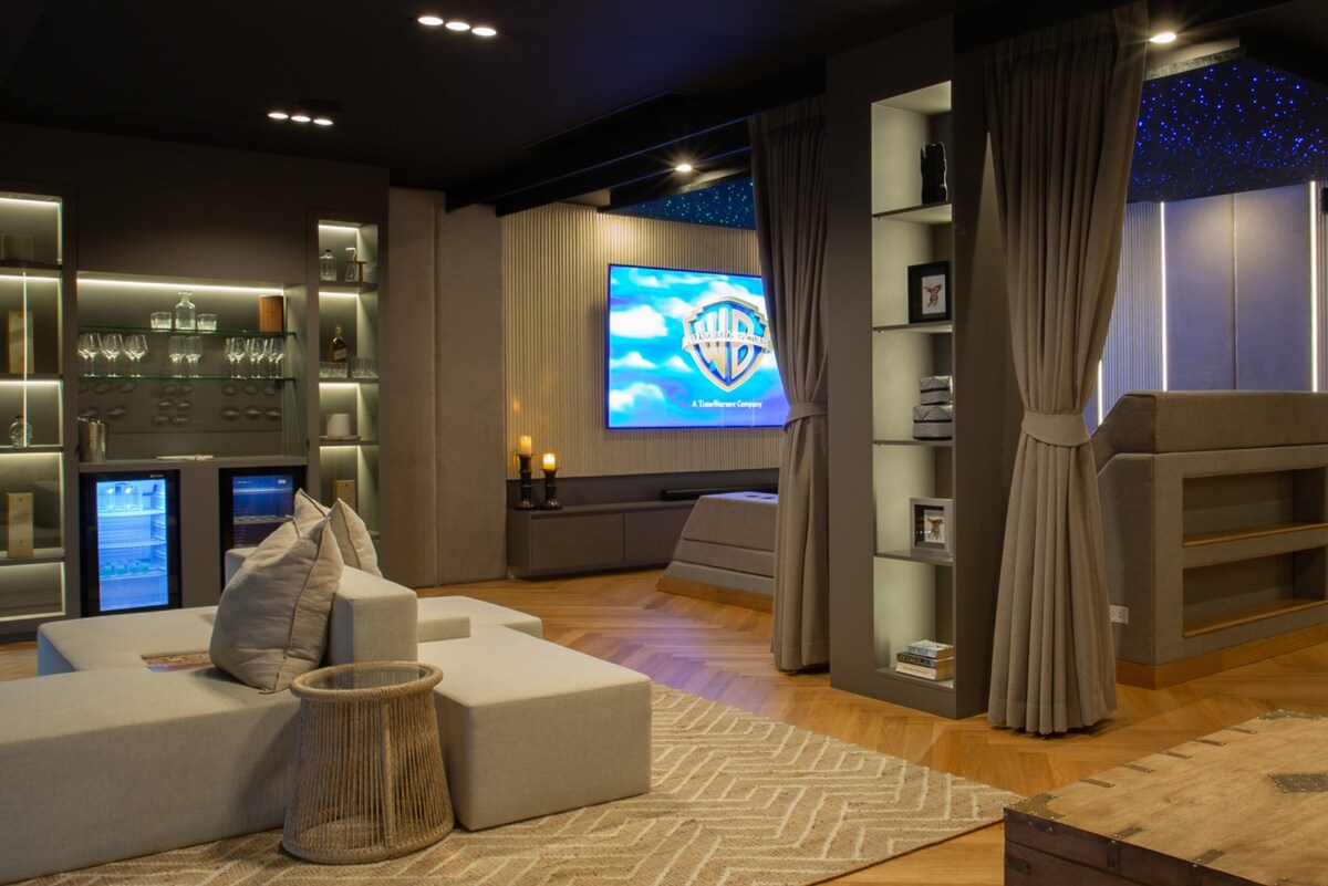 * Private cinema room with seating for 14, Smart TV, Netflix, and surround sound