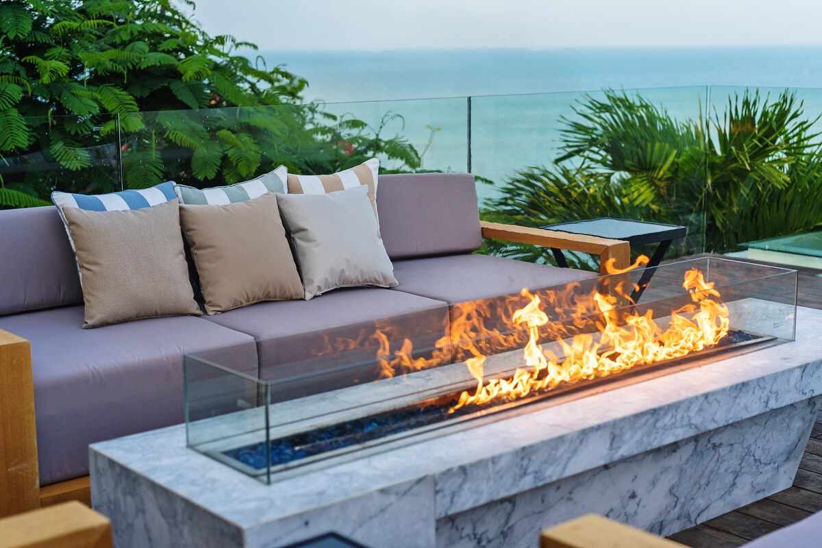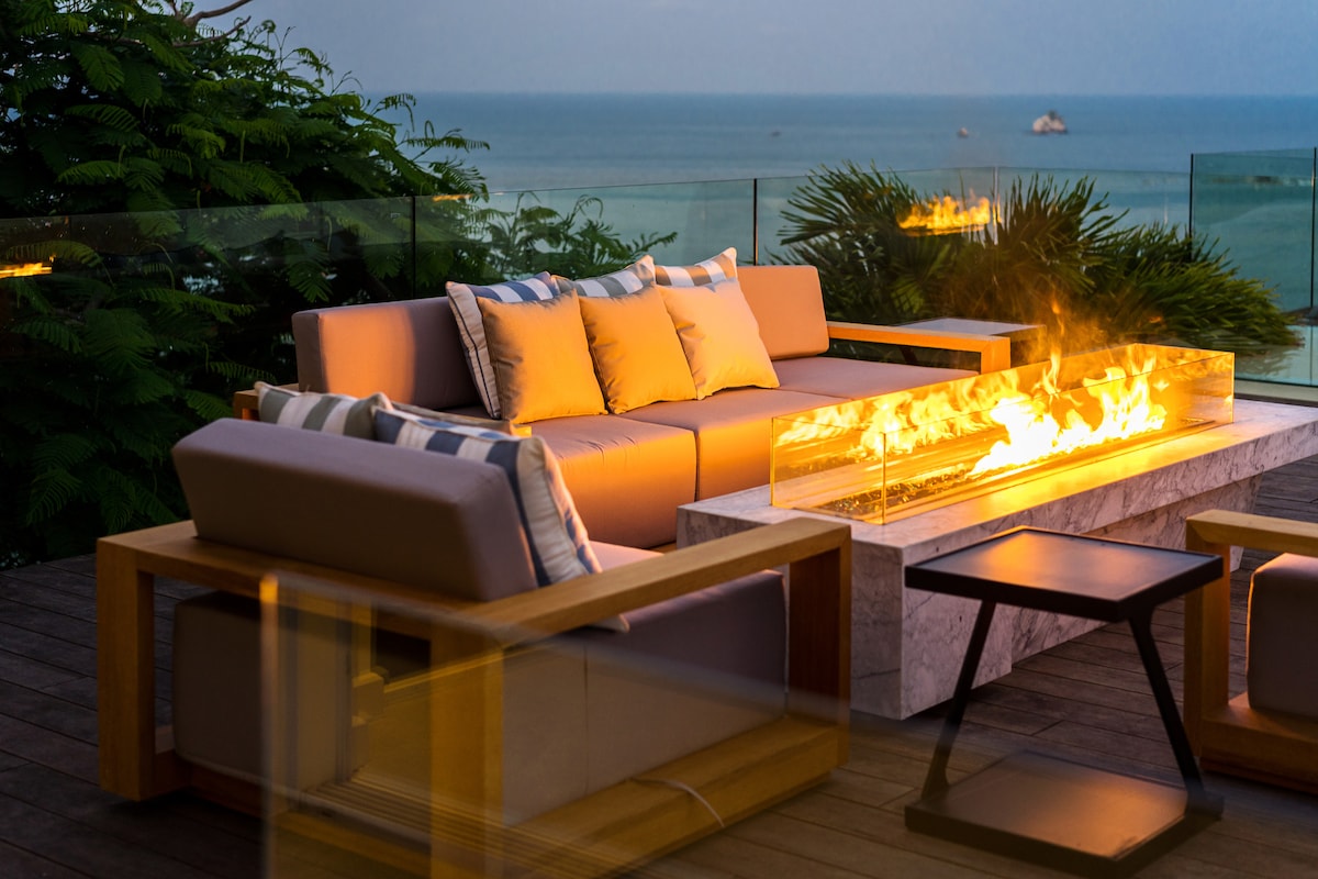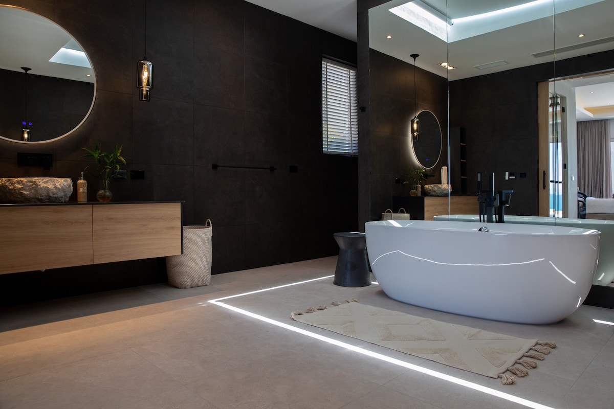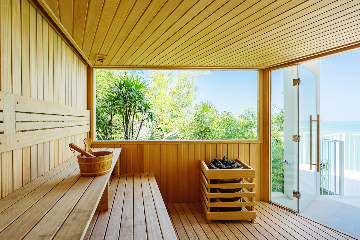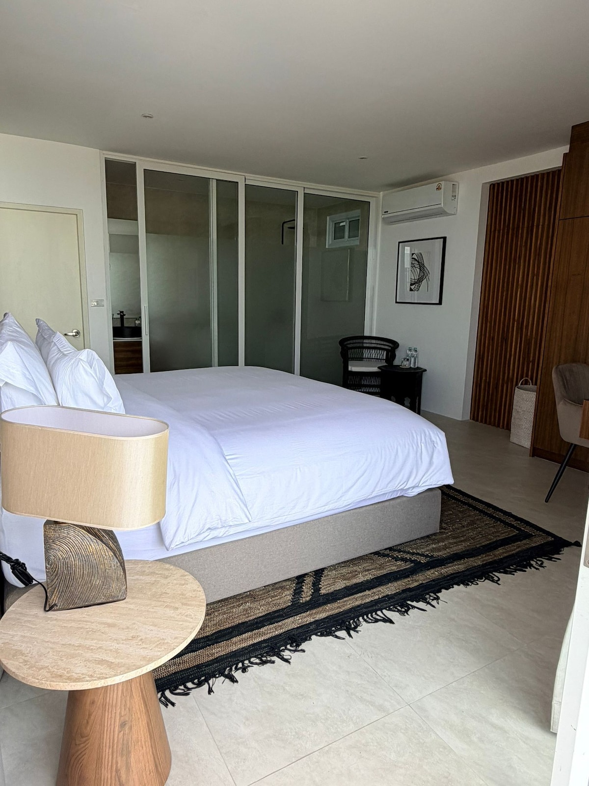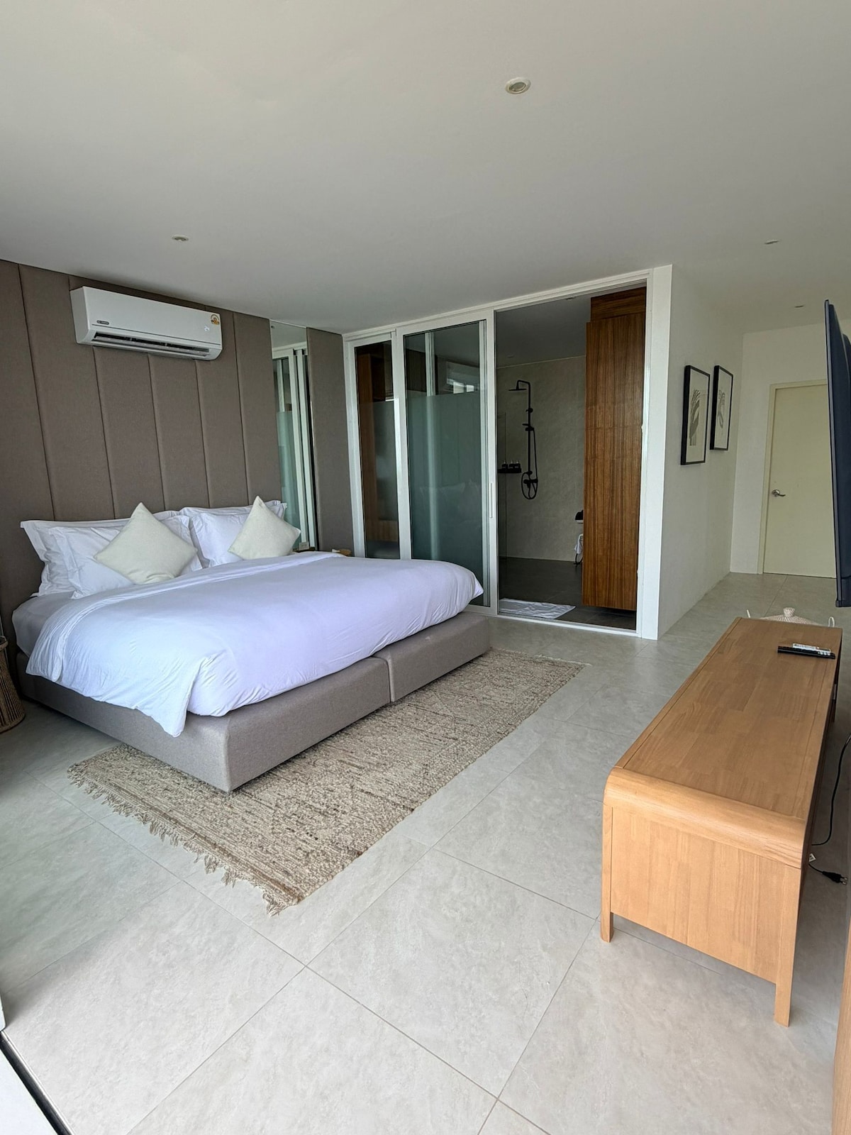 * Master Suite: Upper-level retreat with king bed, work desk, private sea-view terrace, and spa-like ensuite with walk-in rain shower and freestanding tub.
