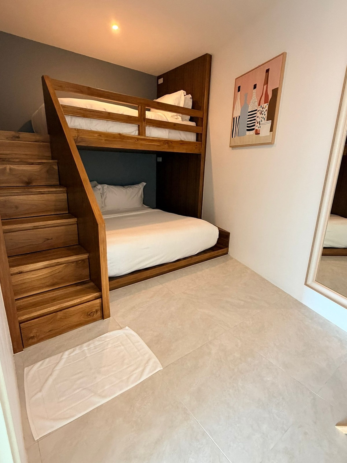 * Kid's bedroom: Lower level next to Bedrooms 7 & 8. One lower queen bed and one single upper bunk bed. Shared bathroom.