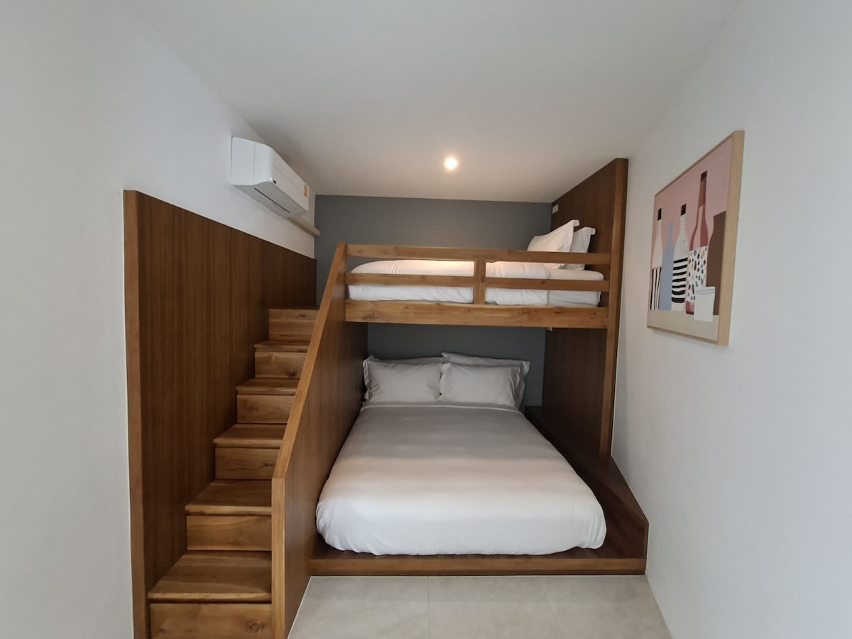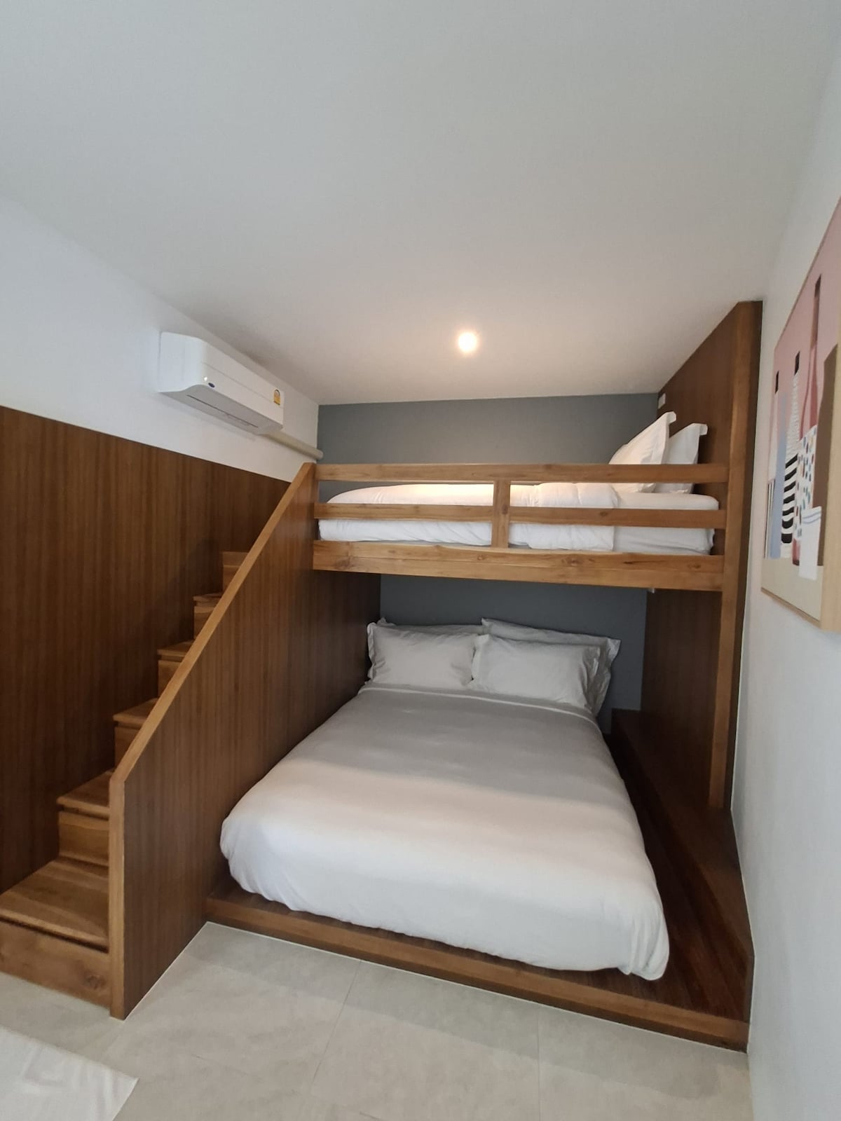 * Kid's bedroom: Lower level next to Bedrooms 7 & 8. One single bed and one pull-out bed. Shared bathroom.