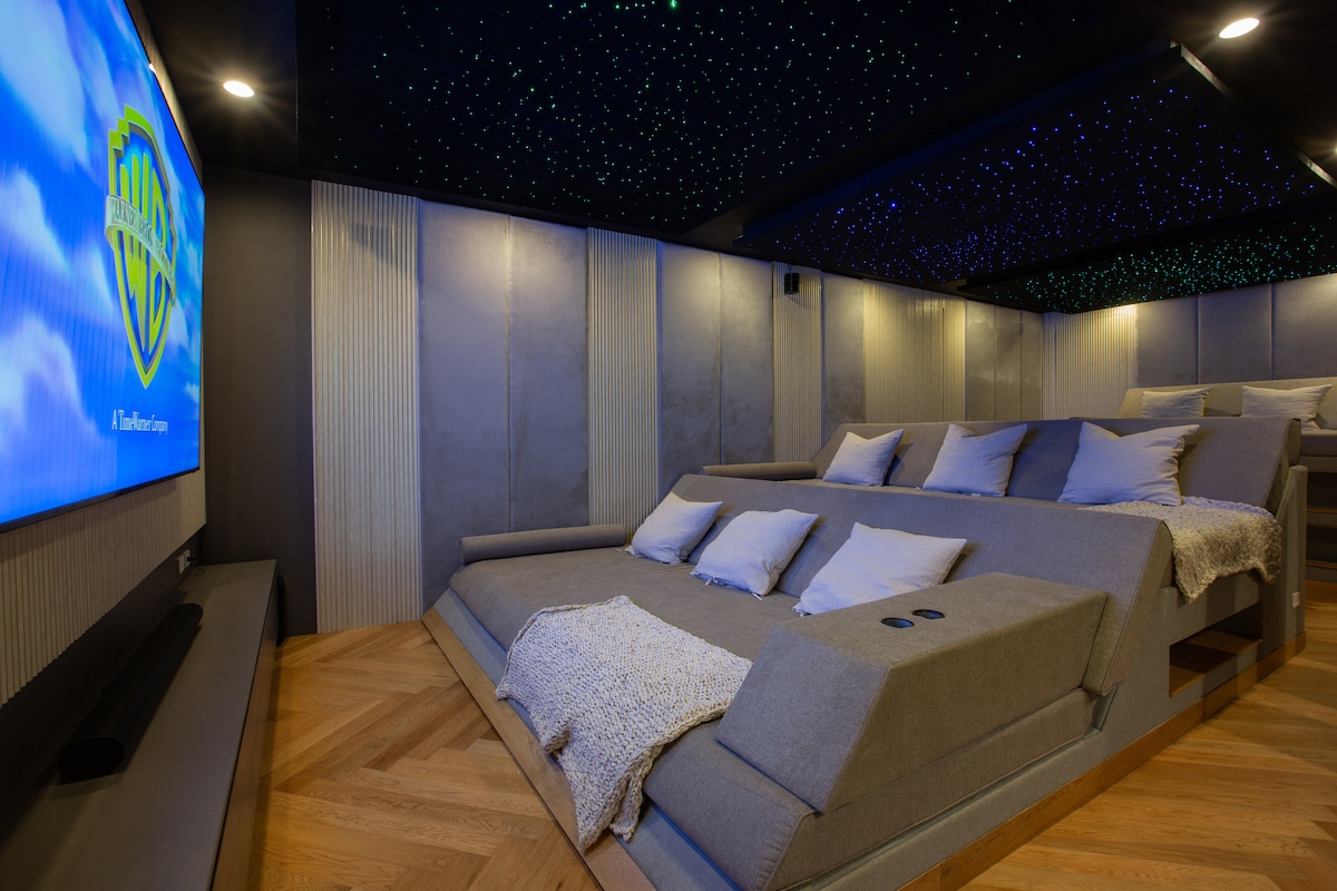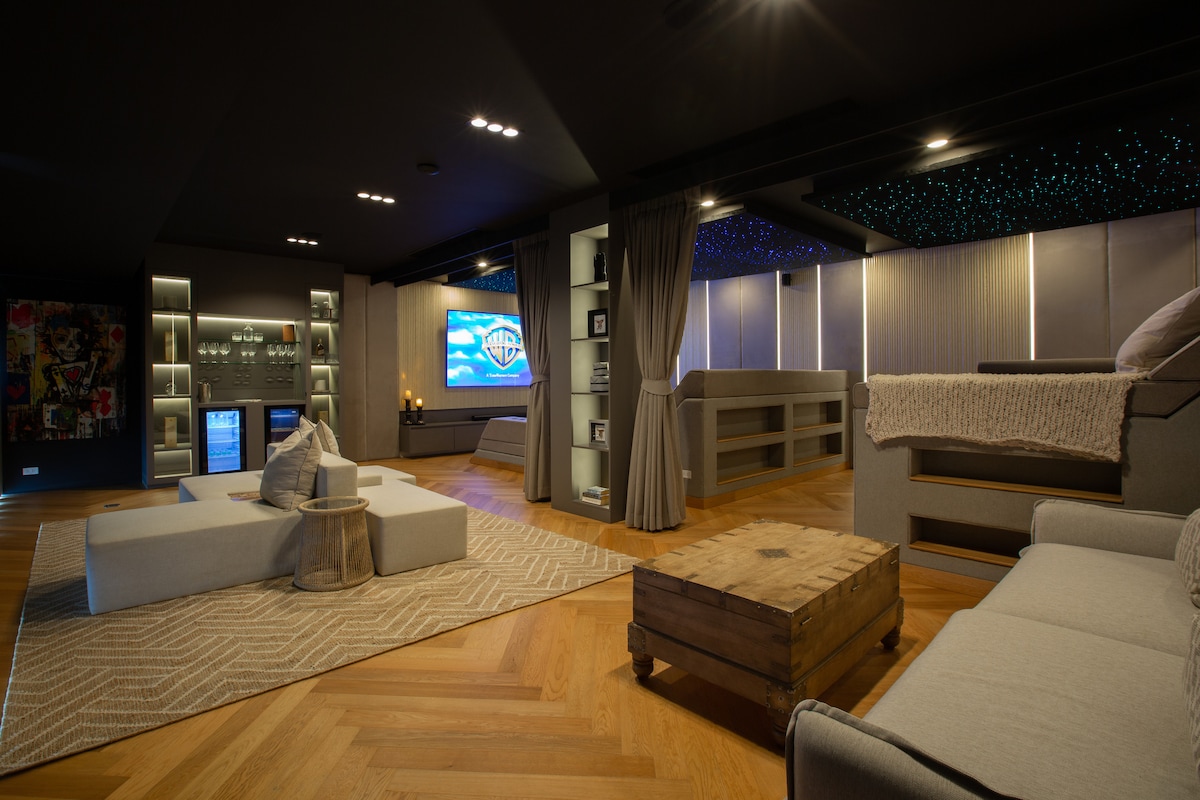 Inside, guests can unwind in the plush indoor lounge with a 90-inch screen and Sonos sound, or enjoy movie nights in the private cinema. The villa is designed to accommodate up to 18 adult guests and 2 children, with extra beds available on request.