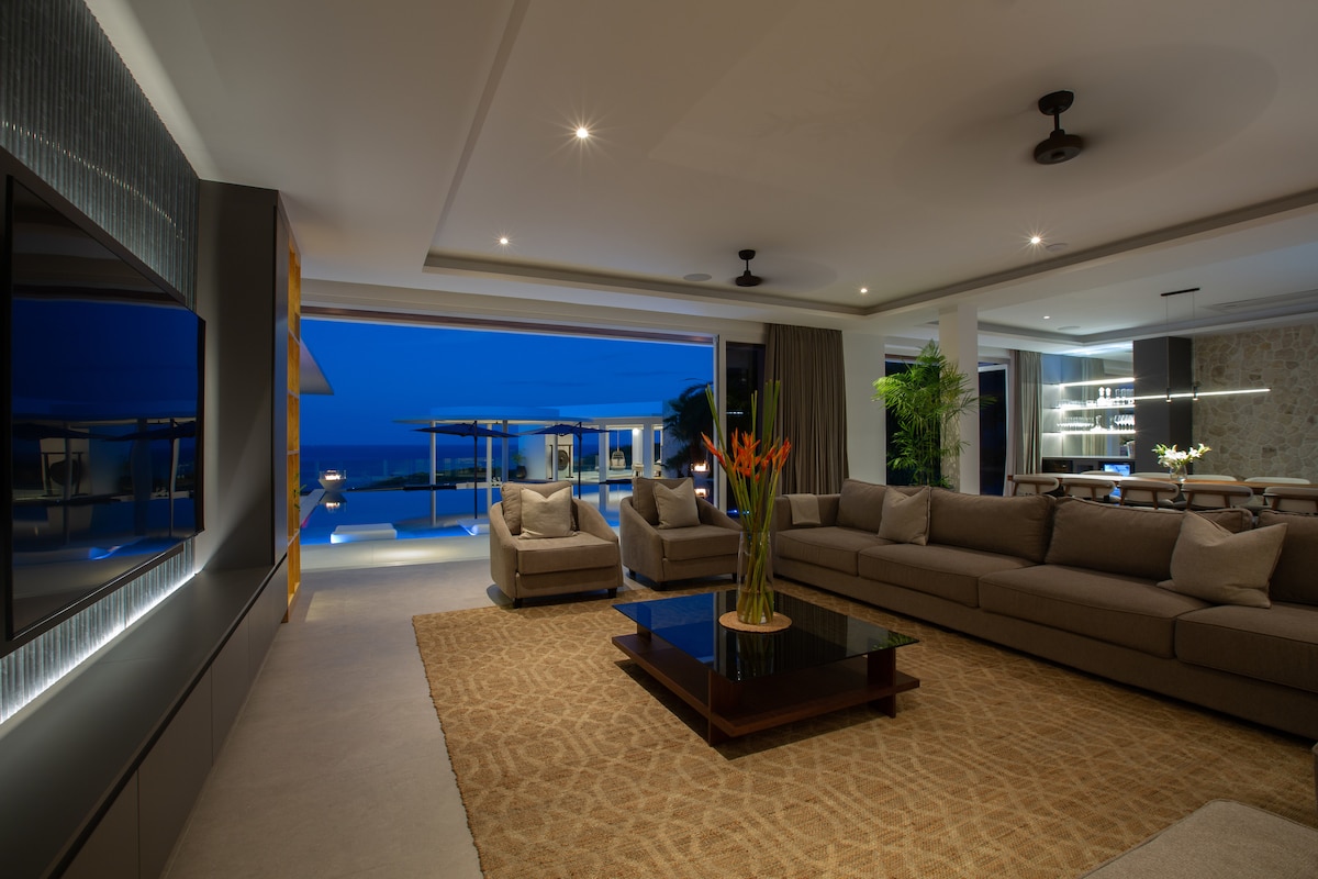 * Bedrooms 5 & 6: Private lower-level spaces near the cinema and gym, each with king bed and calming ocean views.
