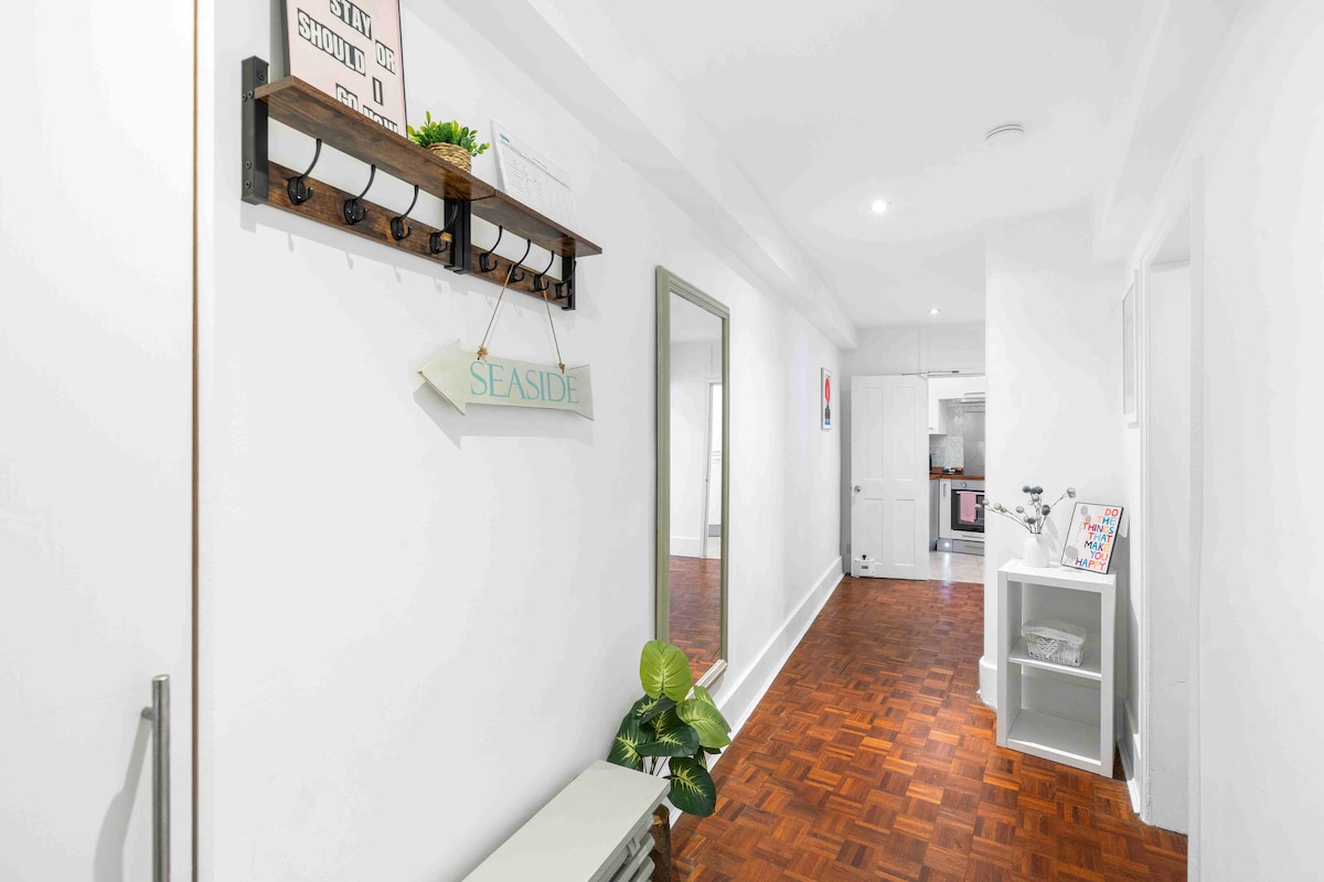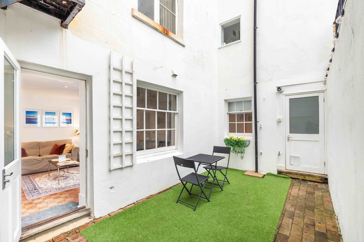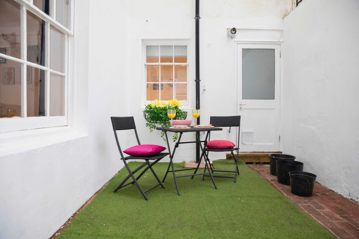 The parquet flooring throughout the entrance hall, living room, and master bedroom adds a touch of classic sophistication. Guests will appreciate the spacious main bathroom with a luxurious corner tub, while the master bedroom benefits from a sleek en suite with a walk-in shower. The home also includes free Wifi and a Smart TVs for streaming (use your own account). Perfectly positioned just a short walk from Brighton Station, the Lanes, and the beach, this hidden gem offers peaceful living in a central location. Whether you're visiting for business or leisure, Powis Patio Retreat is your ideal base to experience the best of Brighton in style and comfort.Imagine being just moments from Brighton station yet hidden in the morning sun of your private escape.