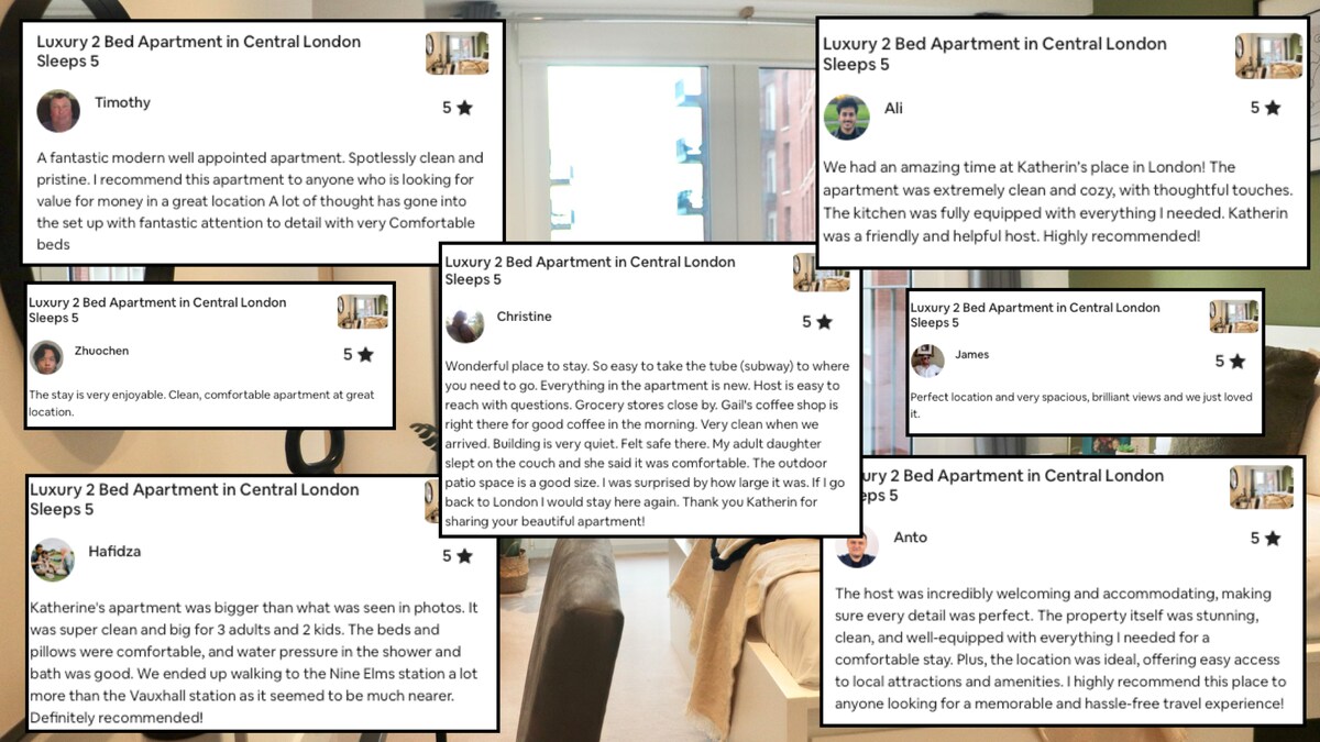 We stayed here for 2 nights for the London marathon and we had a great stay. The location was great and the apartment is really nice and spacious. Great place with a nice balcony and loved that it has 2 ensuites. They were very responsive and I would recommend staying here.