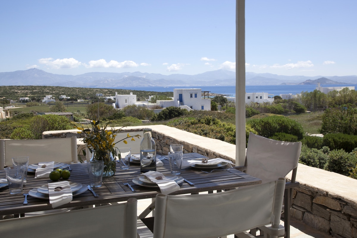 After an exhausting day at our local beach (possibly the best beach on the island for small children), you will lounge under the shaded terrace, a magical relaxation spot, with wonderful seaviews at daytime and moon & star views at night. You will be located at the tranquil and exclusive area of Mikri Santa Maria in Paros. After a few minutes walk, you will be swimming in the beautiful sandy beaches of Mikri Santa, possibly the best beach on the island for small children. Some people might not like all this tranquility or the fact that they will have to cook their own fresh fish/meat in the Bbq provided, using herbs from the garden, but this is up to you to decide! The villa is situated in a 1000 m2 plot of land with olive and fruit trees, aromatic herbs, lavender and wild flowers, which you are free to use . Carefully designed and built following the minimal Cycladic architecture, using local materials of the highest quality, the villa blends harmonically with its natural environment. The large shaded terrace, which the villa enjoys, offers fabulous sea views, providing an ideal location for al fresco meals or evening cocktails with the moon and lights of Naxos island flicker across the sea. The interior spaces are bright, nicely decorated in cool tones of white and beige. Simple lines, earth coloured furniture, stone and polished concrete floors and Aegean white walls bring out a laid-back feeling. The layout or the rooms offers the best possible privacy for everyone living in it. The villa enjoys fully equipped and functional open plan kitchen, with cooking utensils and serving plates. You will have access to a fully equipped and independent villa, with a private shaded terrace and garden from which you can pick herbs for their cooking As much or as little as they want. We are not staying on the premises, however we are only a phone call/email for anything our guests need. The neighborhood is a private residential area with villas. One of the best beaches (Mikri Santa) on the island is within walking distance. You will be only 20m from a bus stop, but the last bus from Naousa to the villas is at about 6pm. So it is not suitable for nightlife! Renting a car is recommended, however we have had guests who just used the buses. Home away from home, for a relaxing and memorable holiday!Guest access