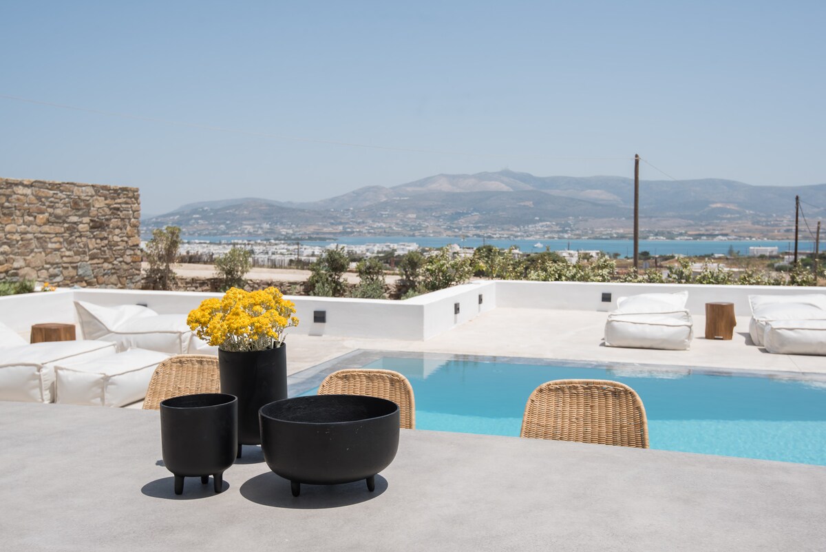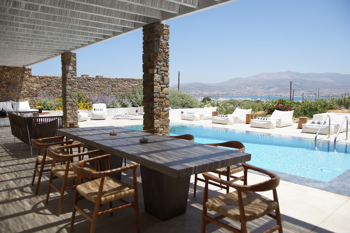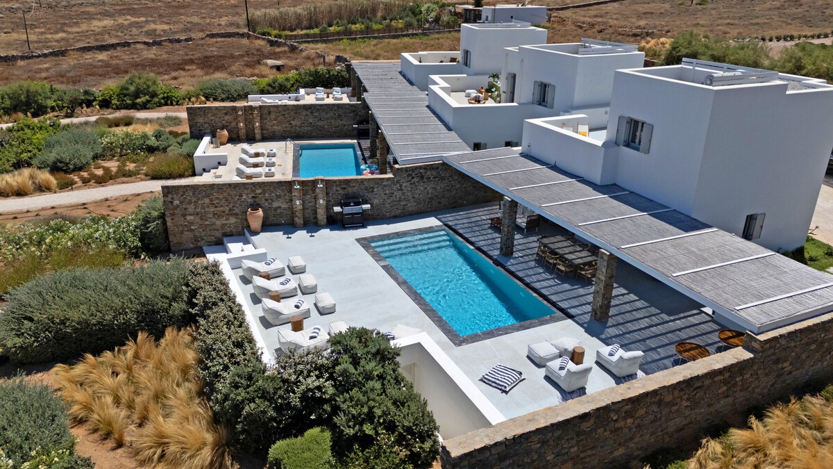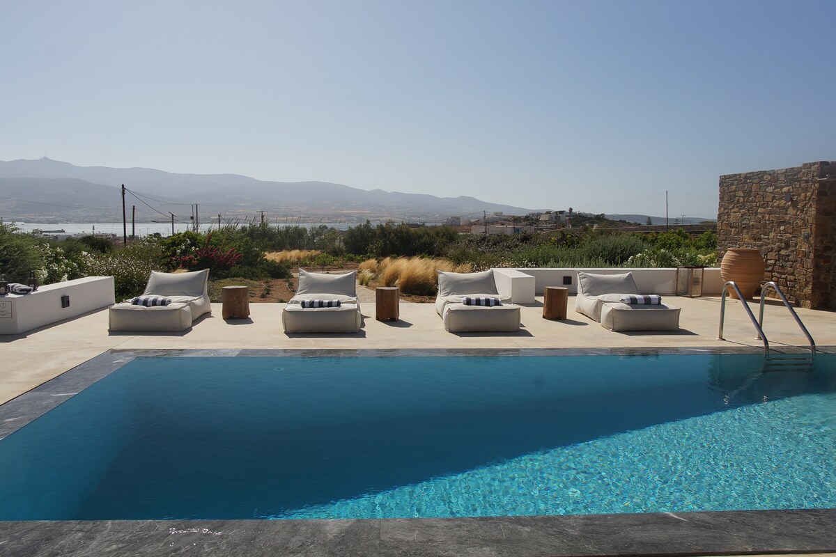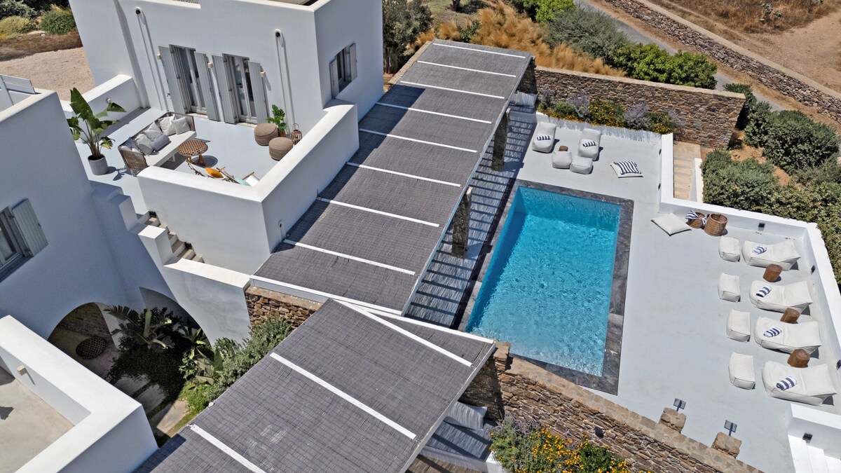 The luxury design Dreamy Villa is stunning 5 bedroom apartment Villa, brand new property with an amazing pool. We are talking high-end smart home with fabulous design furniture that shouts mediterranean summer, spacious spectacular bedrooms with beautiful ensuite Bths, wifi networks as fast as it gets, and other amenities that promise to make this a dream vacation in one of the most hip and chic Cycladic islands of Greece. Everyday cleaning is provided! Only 5’ from the port of Antiparos, in Chora, making it easy to explore the whole island. Oneiro. You will be in Antiparos, where tranquility can be interrupted with the hustle and bustle of nearby Chora Although you will be within walking distance of Chora (main town) and the ferry to Paros; some sort of transport is recommendedOther things to note