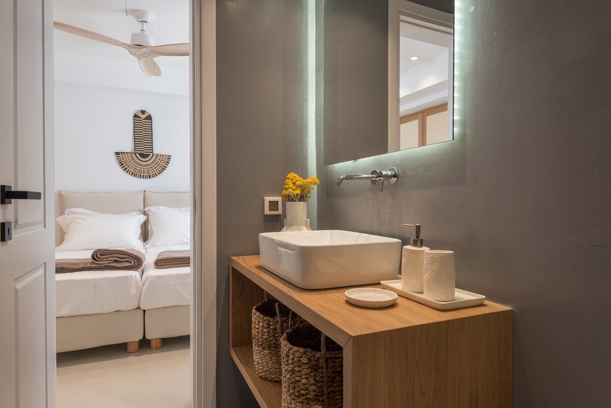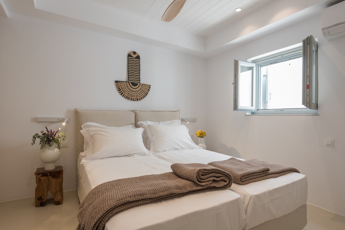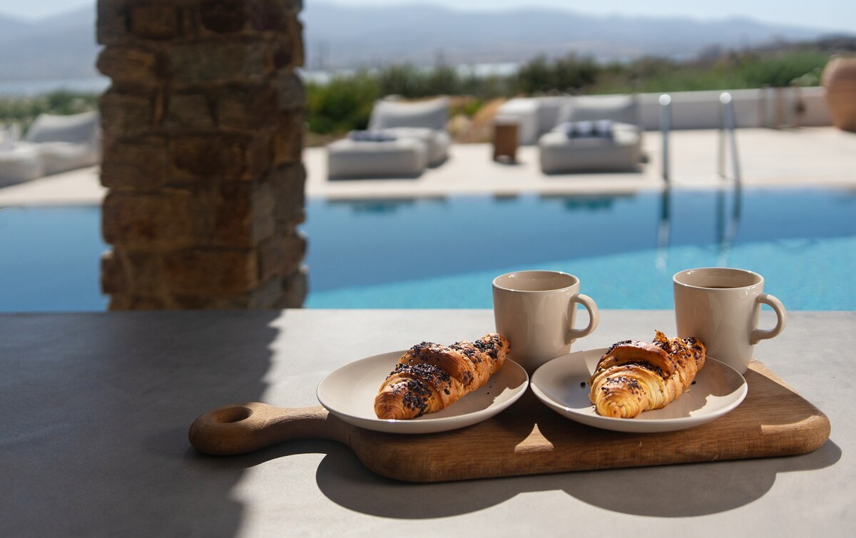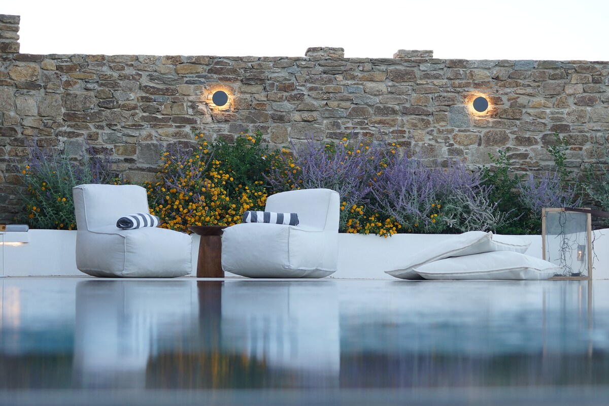 The luxury design Dreamy Villa is stunning 5 bedroom apartment Villa, brand new property with an amazing pool. We are talking high-end smart home with fabulous design furniture that shouts mediterranean summer, spacious spectacular bedrooms with beautiful ensuite Bths, wifi networks as fast as it gets, and other amenities that promise to make this a dream vacation in one of the most hip and chic Cycladic islands of Greece. Everyday cleaning is provided! Only 5’ from the port of Antiparos, in Chora, making it easy to explore the whole island. Oneiro. You will be in Antiparos, where tranquility can be interrupted with the hustle and bustle of nearby Chora Although you will be within walking distance of Chora (main town) and the ferry to Paros; some sort of transport is recommendedOther things to note