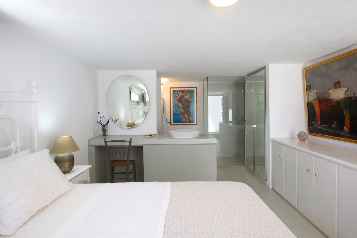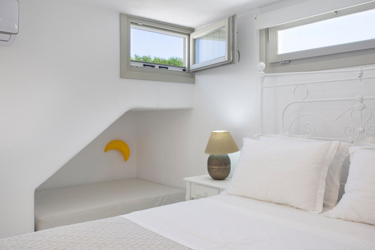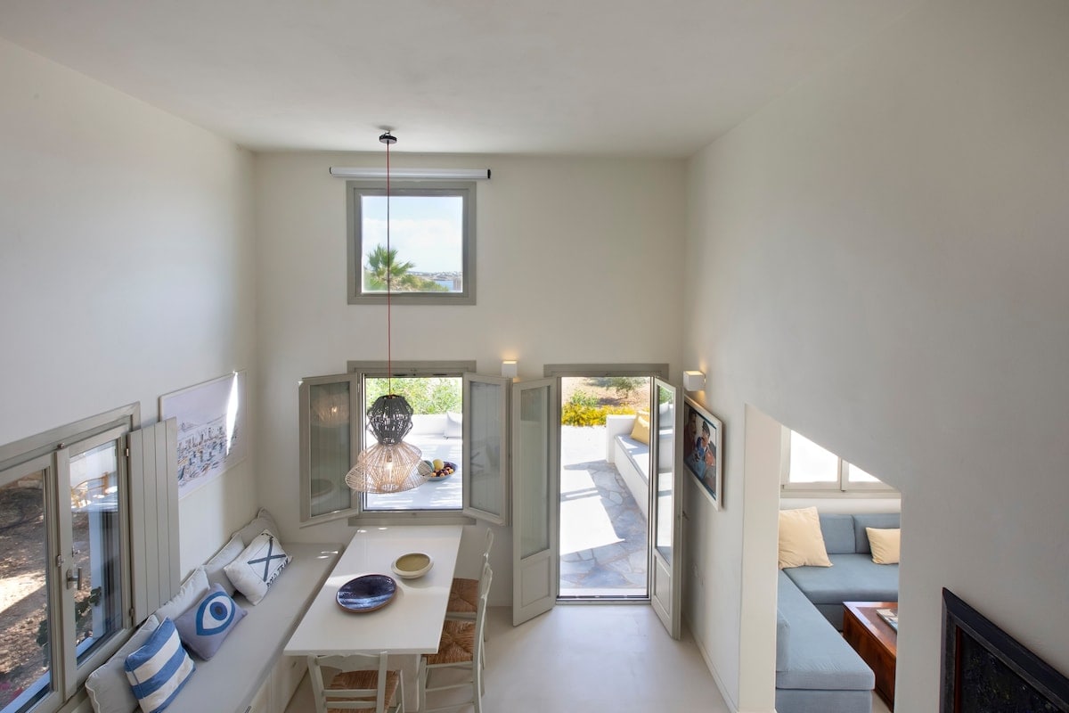 Stay on the outskirts of a lovely fishing village in a beautifully renovated family home with sea views. Just a 2-minute walk from two pristine beaches, our villa has a large garden adn Bbq for adults and kids to enjoy. Up to 6 people can holiday on the idyllic island of Paros, close to basic amenities, fabulous beaches, and a short drive from Naousa town’s picturesque alleys, bars, restaurants and shops. The villa’s second bedroom has a separate entrance offering a large degree of independence. This all-white villa has been recently renovated to a very high standard. Its minimal, designer interiors are very spacious and full of light. You will have exclusive use of the villa and its very large garden with lovely sea views. The extensive outdoors areas are the perfect spot to relax after a day on the beach and gaze at the stars in the warm summer nights. You can barbeque, eat, relax or party outdoors, day or night, under the shaded terraces. Indoors, the large living, dining and kitchen area is very modern, full of light, with very high ceilings and gorgeous sea, island and garden views. There is a large dining table, ideal for family gatherings, a modern living area and a fully-equipped kitchen. A mezzanine level overlooks the main living area. It has plenty of seating, a quiet desk corner and can also sleep two of your group. On the ground floor level there is a double bedroom and a very modern bathroom. On the lower ground floor level , the second bedroom is more like a small independent studio, with a double bed, a small, traditionally-built child’s bed, and its own ensuite bathroom. You will have exclusive access to the villa and the garden. Ambelas is a charming fishing village, a few minutes’ drive from Naousa town. There is a picturesque port, lovely beaches and plenty of tavernas offering the day’s catch. Some of Paros’ best known beaches, such as Santa Maria and Kolimbithres are just a short drive away. The village also has a riding school, a yoga and meditation centre and shops for necessities. It is a great spot for those wanting to explore Paros’ traditional hillside villages like Lefkes. The villa is located in a residential area within walking distance of Ambelas Even though you can walk to the nearest village, we recomend that you hire a car to fully enjoy your stay as there is no bus stop near our home. You can also stay in one of Villa Aphrodite's sister homes: Villa Alkyoni https://www. airbnb. gr/rooms/6395937 or Villa Erato https://www. airbnb. gr/rooms/6115071Guest access
