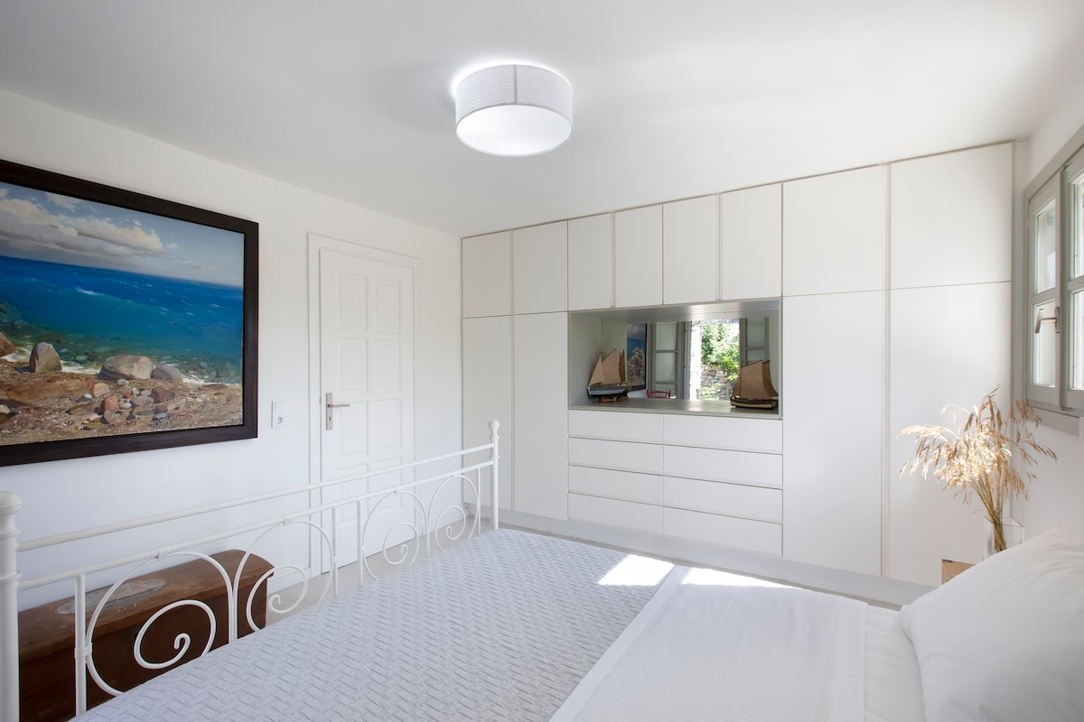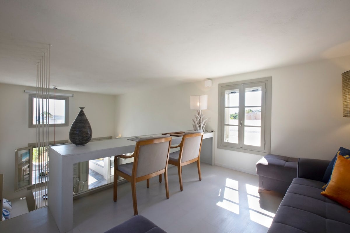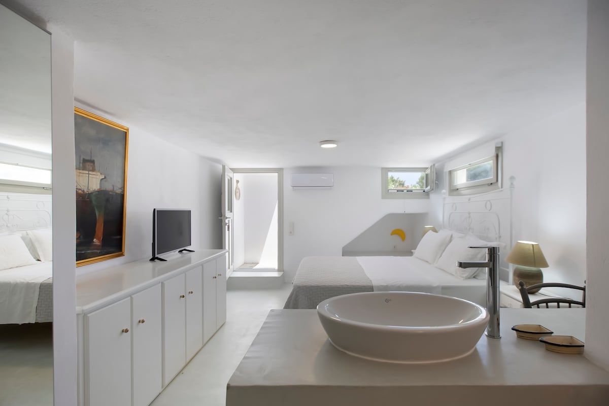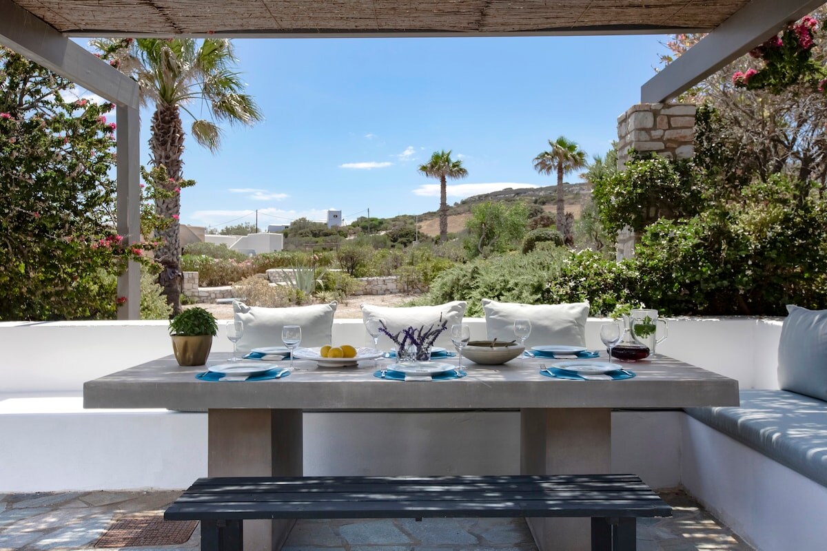Stay on the outskirts of a lovely fishing village in a beautifully renovated family home with sea views. Just a 2-minute walk from two pristine beaches, our villa has a large garden adn Bbq for adults and kids to enjoy. Up to 6 people can holiday on the idyllic island of Paros, close to basic amenities, fabulous beaches, and a short drive from Naousa town’s picturesque alleys, bars, restaurants and shops. The villa’s second bedroom has a separate entrance offering a large degree of independence. This all-white villa has been recently renovated to a very high standard. Its minimal, designer interiors are very spacious and full of light. You will have exclusive use of the villa and its very large garden with lovely sea views. The extensive outdoors areas are the perfect spot to relax after a day on the beach and gaze at the stars in the warm summer nights. You can barbeque, eat, relax or party outdoors, day or night, under the shaded terraces. Indoors, the large living, dining and kitchen area is very modern, full of light, with very high ceilings and gorgeous sea, island and garden views. There is a large dining table, ideal for family gatherings, a modern living area and a fully-equipped kitchen. A mezzanine level overlooks the main living area. It has plenty of seating, a quiet desk corner and can also sleep two of your group. On the ground floor level there is a double bedroom and a very modern bathroom. On the lower ground floor level , the second bedroom is more like a small independent studio, with a double bed, a small, traditionally-built child’s bed, and its own ensuite bathroom. You will have exclusive access to the villa and the garden. Ambelas is a charming fishing village, a few minutes’ drive from Naousa town. There is a picturesque port, lovely beaches and plenty of tavernas offering the day’s catch. Some of Paros’ best known beaches, such as Santa Maria and Kolimbithres are just a short drive away. The village also has a riding school, a yoga and meditation centre and shops for necessities. It is a great spot for those wanting to explore Paros’ traditional hillside villages like Lefkes. The villa is located in a residential area within walking distance of Ambelas Even though you can walk to the nearest village, we recomend that you hire a car to fully enjoy your stay as there is no bus stop near our home. You can also stay in one of Villa Aphrodite's sister homes: Villa Alkyoni https://www. airbnb. gr/rooms/6395937 or Villa Erato https://www. airbnb. gr/rooms/6115071Guest access
