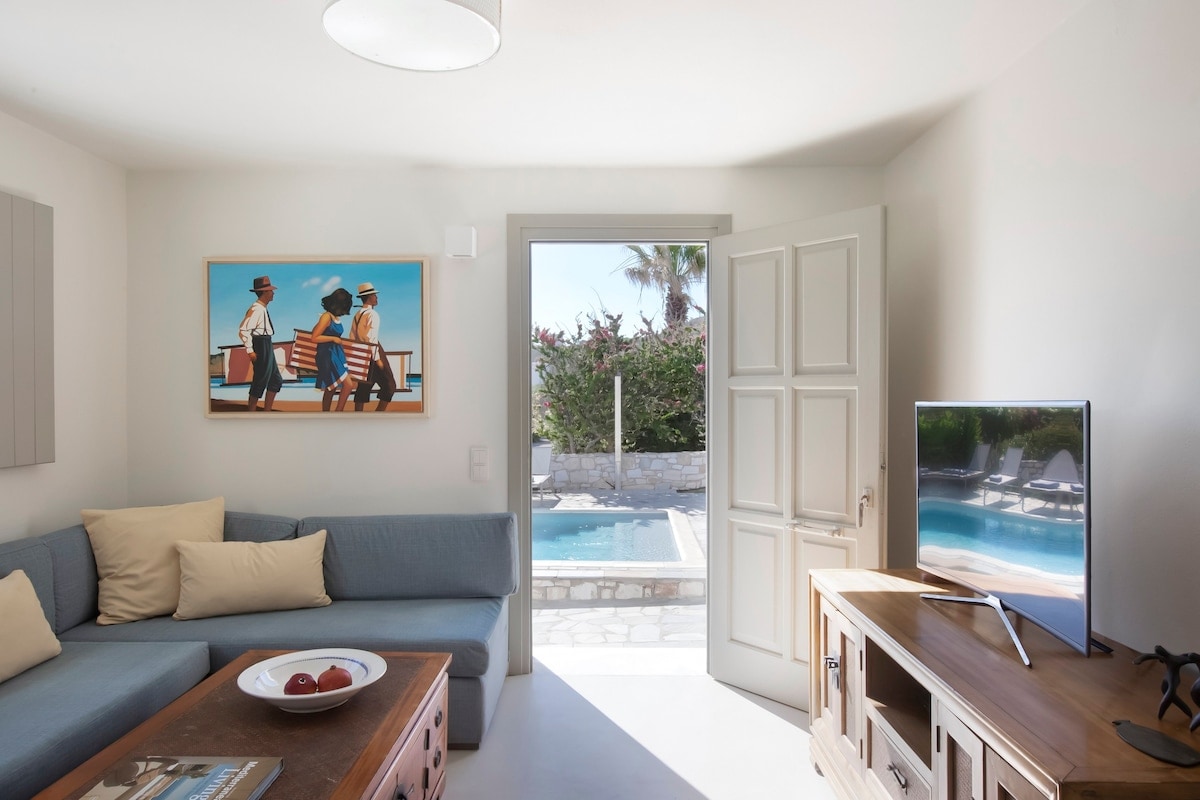 Stay on the outskirts of a lovely fishing village in a beautifully renovated family home with sea views. Just a 2-minute walk from two pristine beaches, our villa has a large garden adn Bbq for adults and kids to enjoy. Up to 6 people can holiday on the idyllic island of Paros, close to basic amenities, fabulous beaches, and a short drive from Naousa town’s picturesque alleys, bars, restaurants and shops. The villa’s second bedroom has a separate entrance offering a large degree of independence.