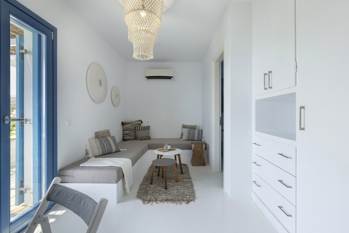 Comfortable and stylish house, ideally located close to a beautiful sandy beach. Large covered veranda has a magnificent view to the Aegean. Fully equipped kitchen with Nespresso and coffee-maker machine, private entrance and a parking area just outside the house. Unique landscape full of trees and plants. You will have access to a fully equipped and independent house with a private shaded terrace. We are only a phone call/email or a text away for anything you need.