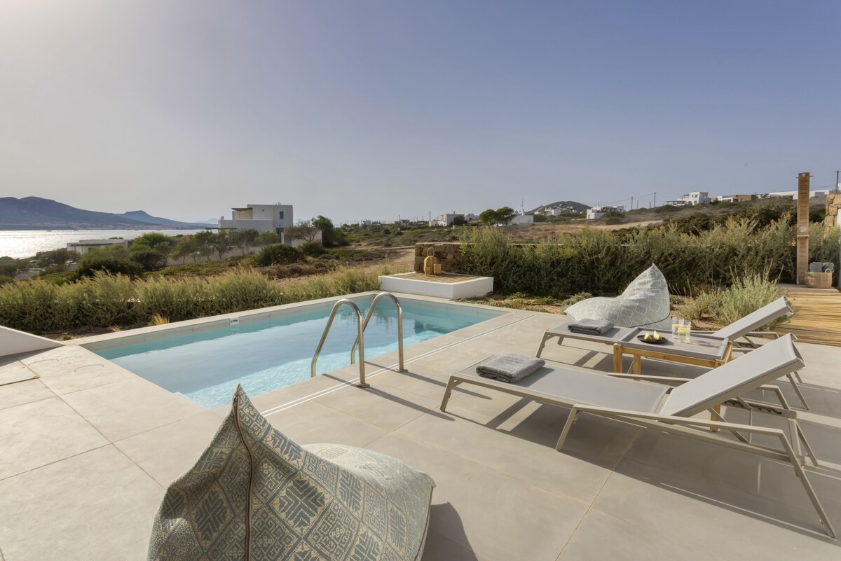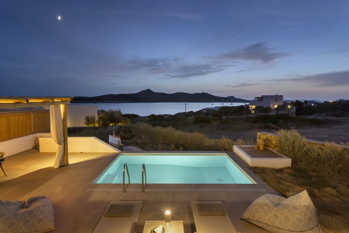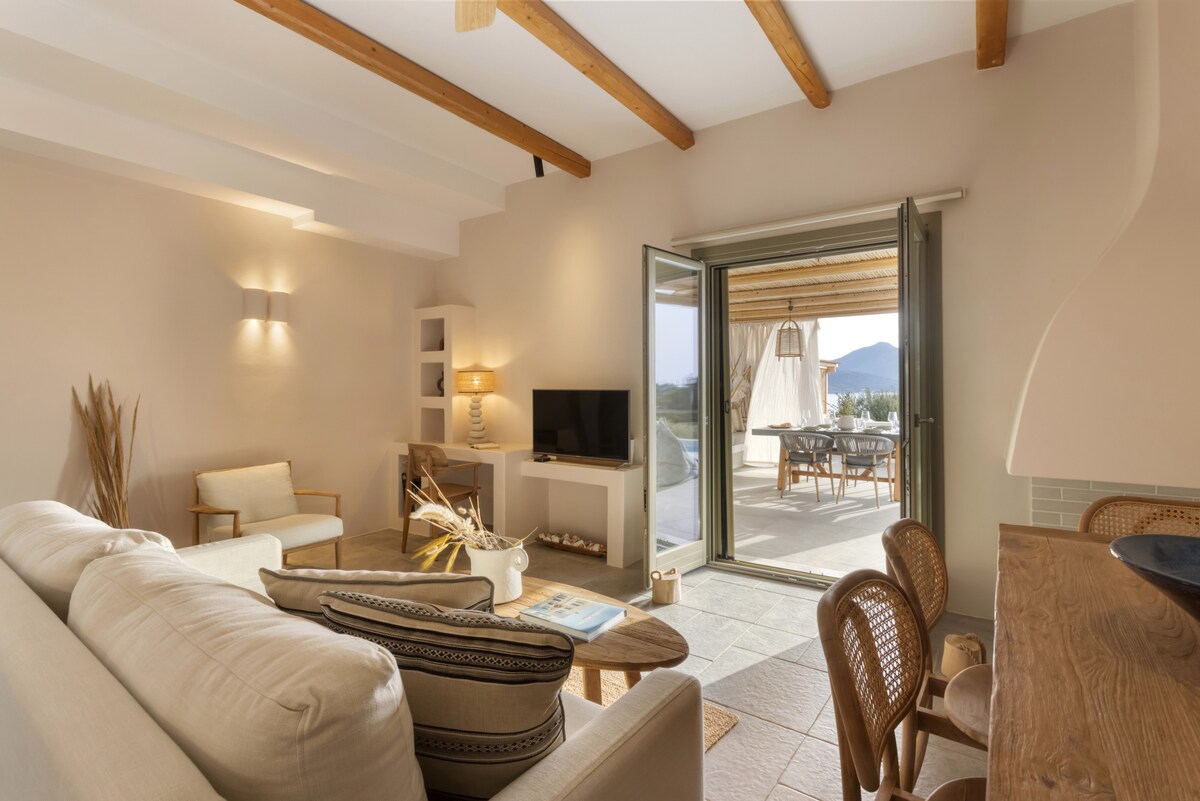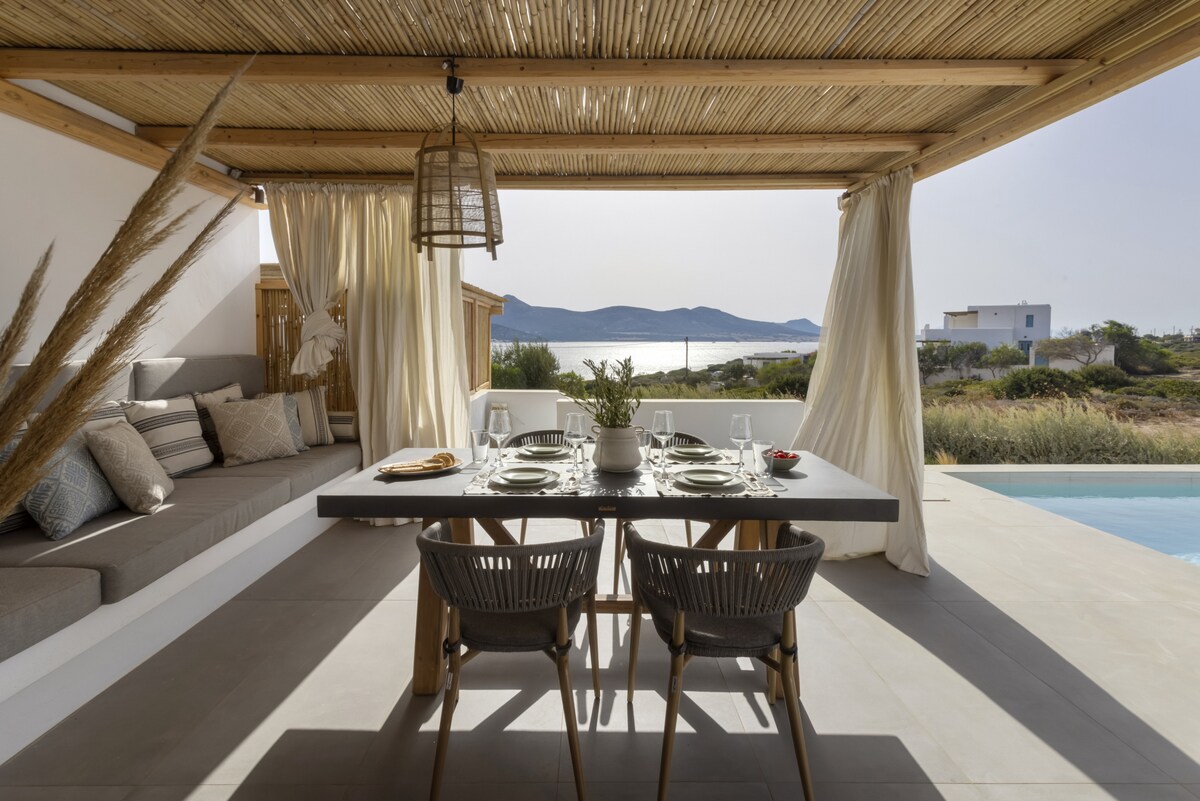 Welcome to the Peaceful Villa Avra with an extraordinary Aegean Seaview! Built in one of the most enchanting seaside areas of Antiparos, Agios Georgios, the Paralos Houses complex overlooks the island of Despotiko and is an oasis of peace, harmony and luxury that celebrates the Greek summer. Having adopted the traditional Cycladic architecture but with a distinct stylistic pro-file each one, the 3 houses of the complex feature fully equipped comfortable spac-es, welcoming outdoor facilities with a private swimming pool and breathtaking views of the Aegean Sea. With respect to the natural environment and the authentic character of Antiparos, Paralos Houses ensures absolute privacy and tranquility to its guests, offers breath-taking sunsets, becomes an experience unlike any other. Sweet earthy tones, unpretentious elegance and modern bohemian aesthetics are harmoniously combined in the spaces of Avra residence. The refined decoration is complemented by the use of natural materials in furniture and lighting, such as wood and mat, as well as characteristic samples of Cycladic art, highlighted by the aesthetic lighting, which is evident in most rooms. In Avra you can enjoy plenty of spaces to rest, sleep and dine, relax in the hammock of the small private garden overlooking the ancient findings at Despotiko or take a dip in the pool while enjoying the fragrances of the local aromatic plants that dominate the area.Other things to note