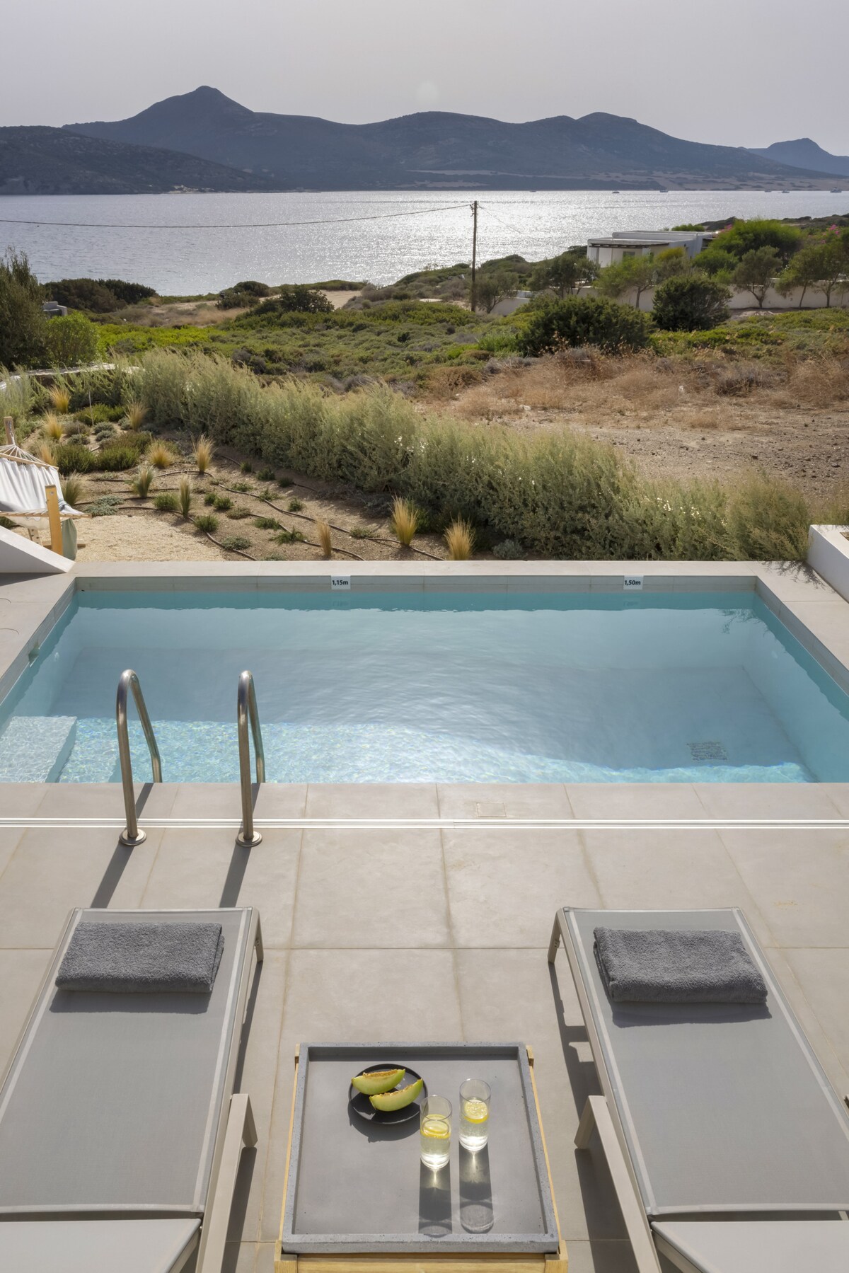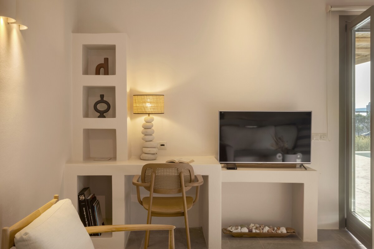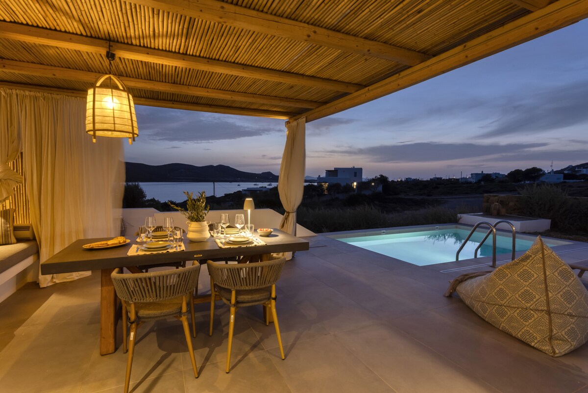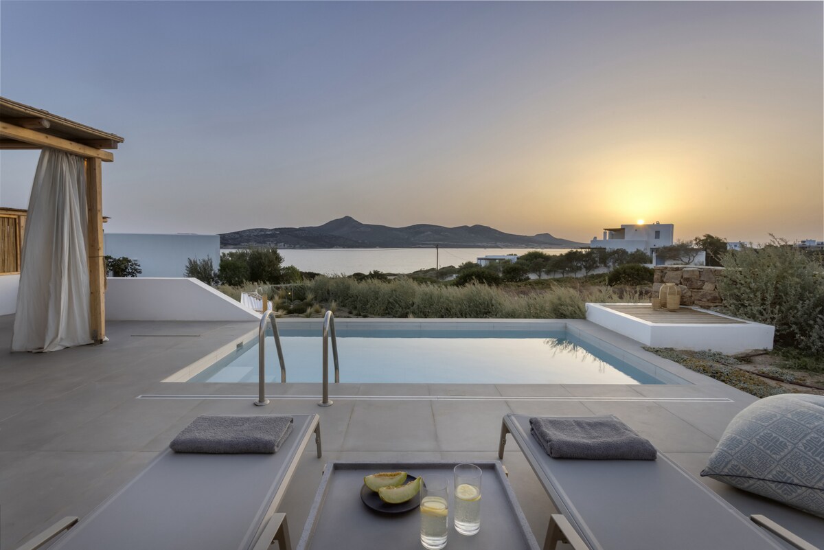 Welcome to the Peaceful Villa Avra with an extraordinary Aegean Seaview! Built in one of the most enchanting seaside areas of Antiparos, Agios Georgios, the Paralos Houses complex overlooks the island of Despotiko and is an oasis of peace, harmony and luxury that celebrates the Greek summer. Having adopted the traditional Cycladic architecture but with a distinct stylistic pro-file each one, the 3 houses of the complex feature fully equipped comfortable spac-es, welcoming outdoor facilities with a private swimming pool and breathtaking views of the Aegean Sea. With respect to the natural environment and the authentic character of Antiparos, Paralos Houses ensures absolute privacy and tranquility to its guests, offers breath-taking sunsets, becomes an experience unlike any other. Sweet earthy tones, unpretentious elegance and modern bohemian aesthetics are harmoniously combined in the spaces of Avra residence. The refined decoration is complemented by the use of natural materials in furniture and lighting, such as wood and mat, as well as characteristic samples of Cycladic art, highlighted by the aesthetic lighting, which is evident in most rooms. In Avra you can enjoy plenty of spaces to rest, sleep and dine, relax in the hammock of the small private garden overlooking the ancient findings at Despotiko or take a dip in the pool while enjoying the fragrances of the local aromatic plants that dominate the area.Other things to note