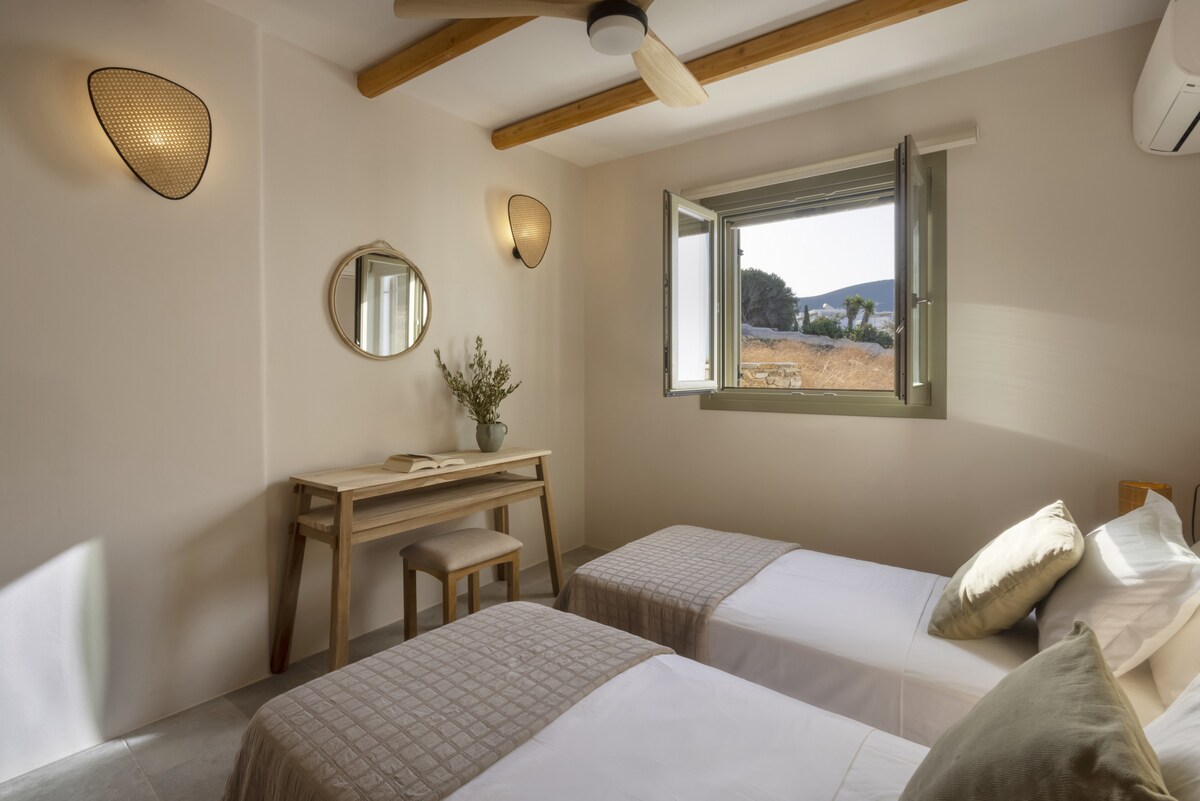 Returning to Antiparos, we stayed at Theocharis House and it didn't disappoint. The house is equipped with top-notch linens and beds, ensuring a luxurious sleep. The pool was a daily highlight, perfect for relaxation and fun. Just a minute's walk to a beautiful beach, it's ideally located near the best fish taverns. Watching sunsets with yachts dotting the horizon between us and Despotiko was breathtaking. A minor note: the outdoor curtains could be better secured against strong winds. We're definitely coming back next year!