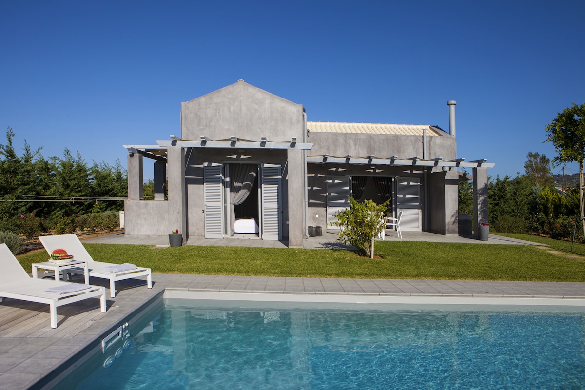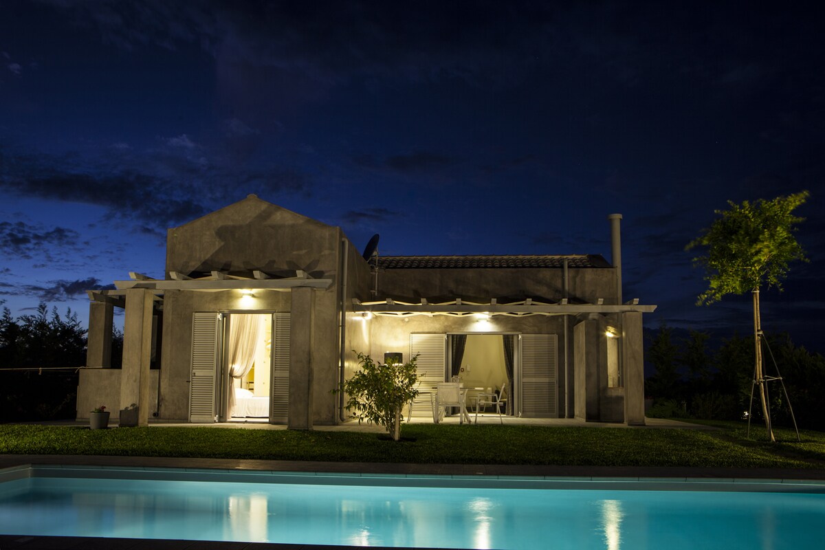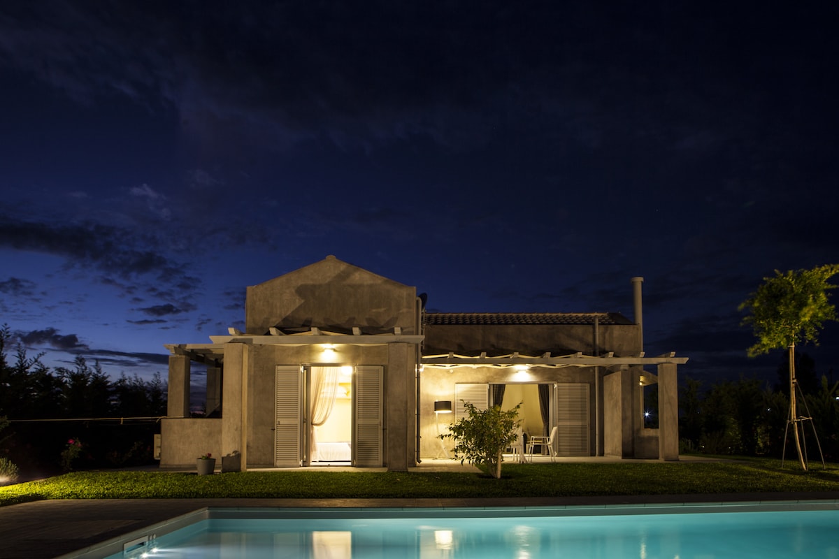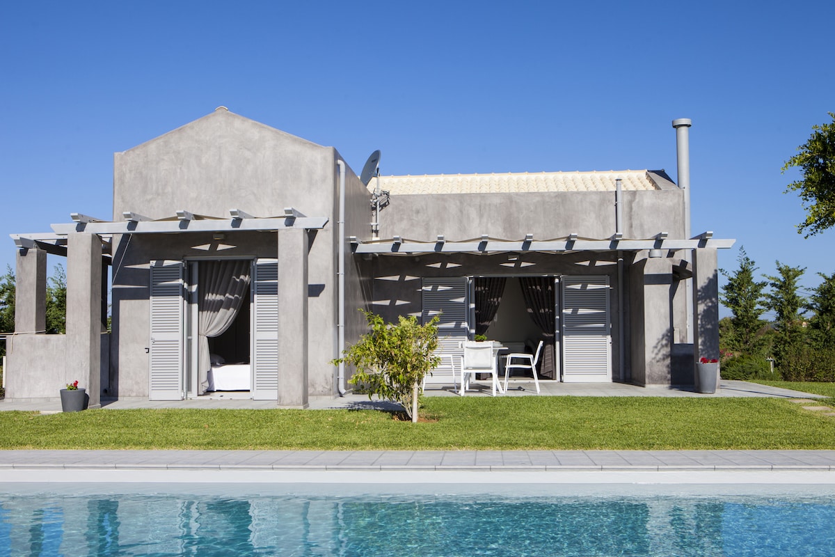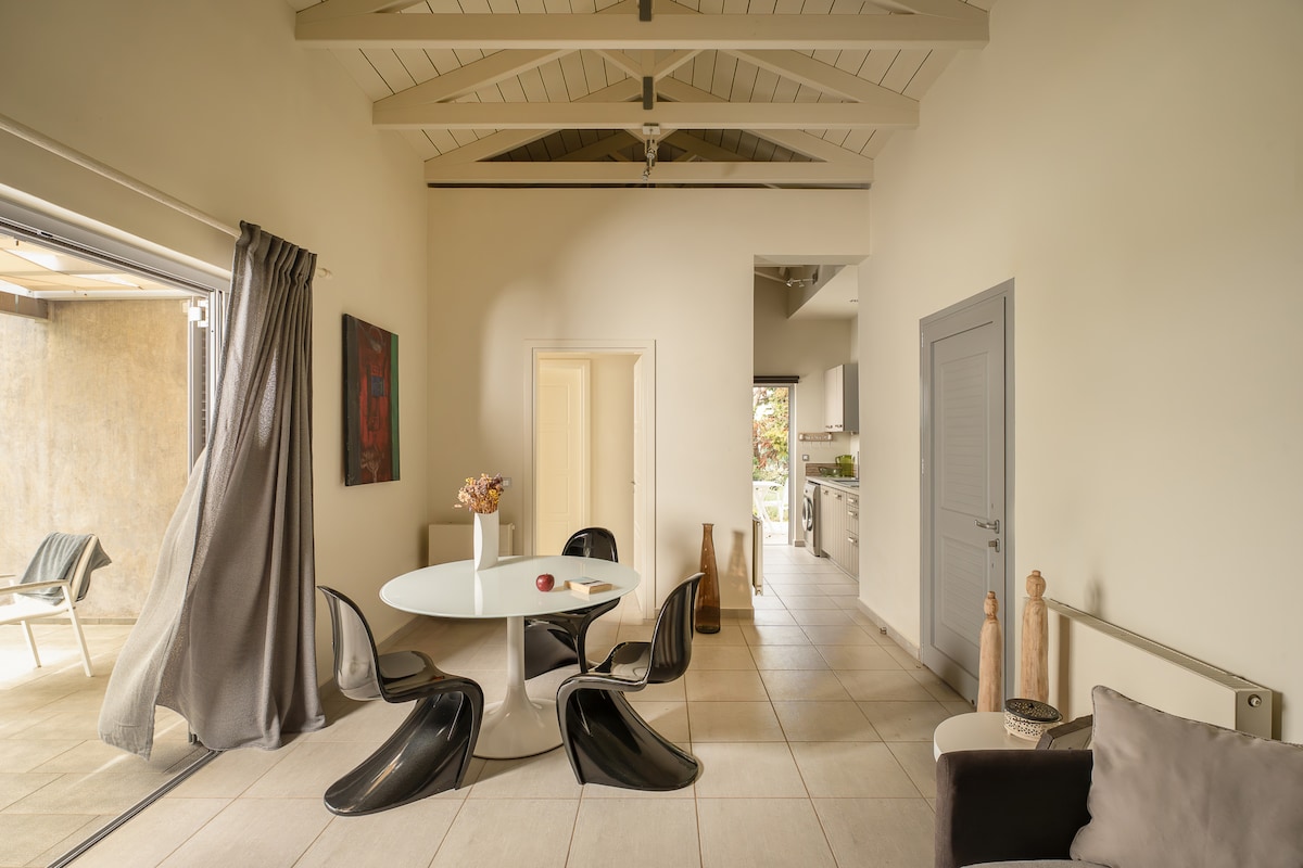 Villa Lefteris is set in a great location, within walking distance of local tavernas, shops and the two sandy beaches. This newly built, large modern one bedroom property has been styled and finished to a very high standard and sits within beautifully landscaped gardens. Villa Lefteris offers a spacious open plan and shabby chic design, offering beautiful pastel colours and wooden vaulted ceilings throughout. From the living area, patio doors lead out to a large covered terrace which overlooks the pool, the sea and surrounding countryside. The village of Svoronata sits on the coast surrounded by lush and unspoilt countryside, fields and orchards are abundant. In the village of Svoronata you will be charmed with the country paths offering a few local tavernas. There are also some Mini-markets, all situated within walking distance. The lovely beaches of Ammos, Ai helis and Avithos are all close by. Argostoli, the capital of the island, Lassi and the famous Makris Gialos beach, are all within a fifteen minute drive away from Villa Lefteris.Other things to note