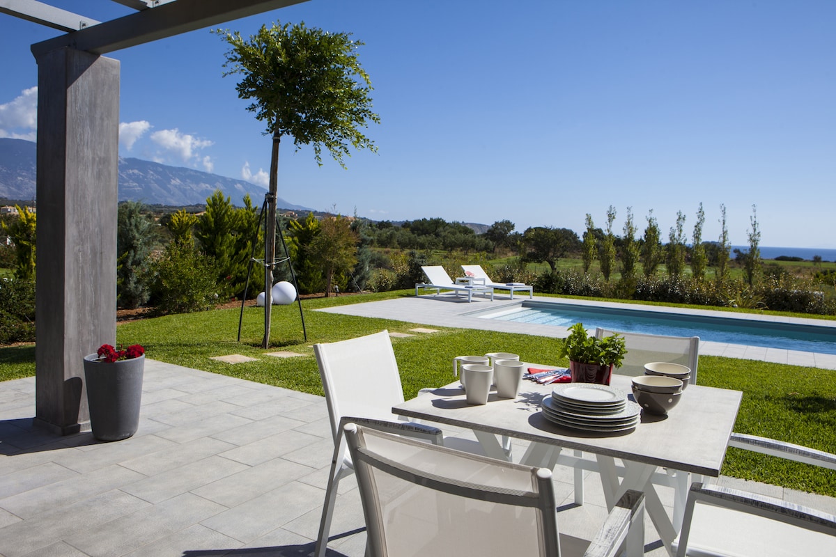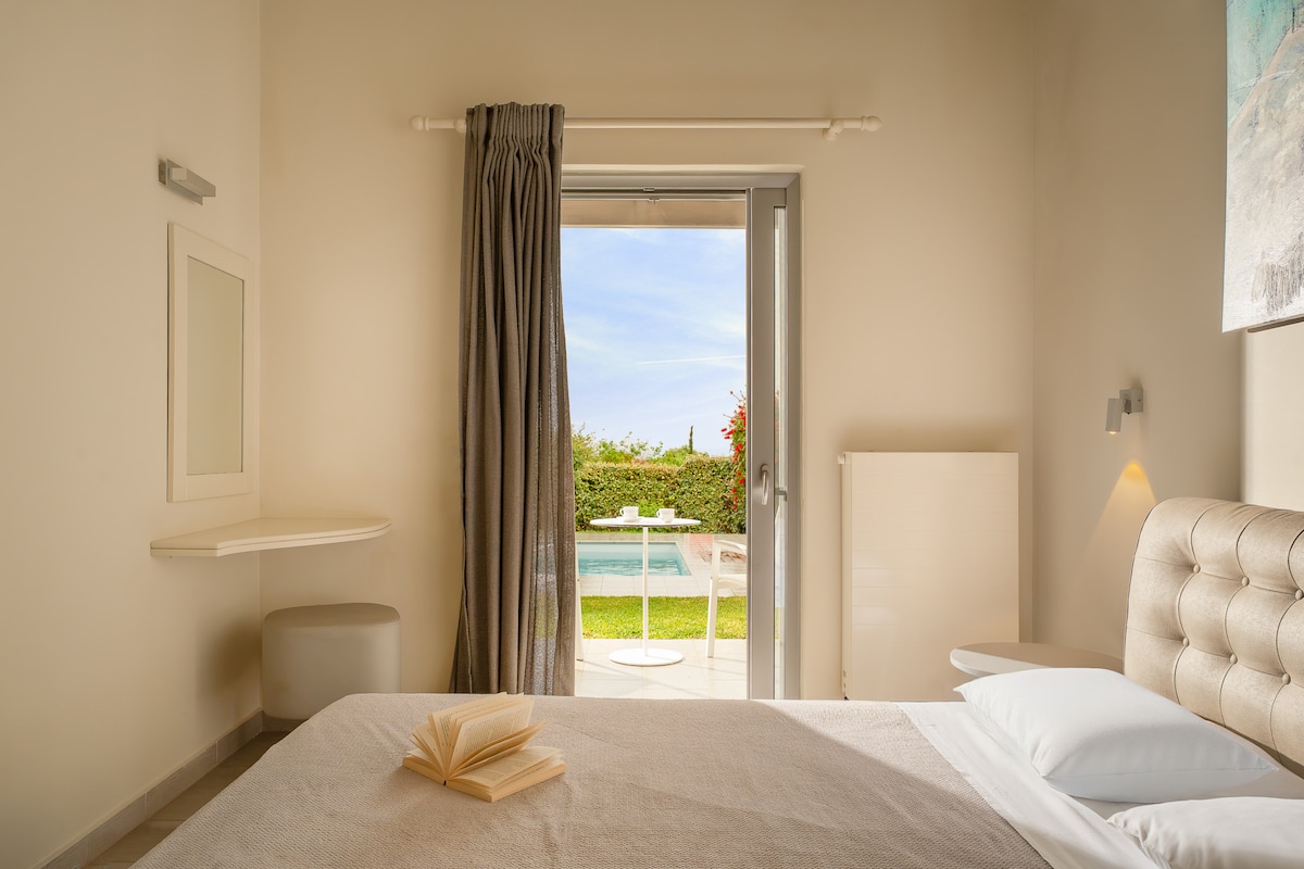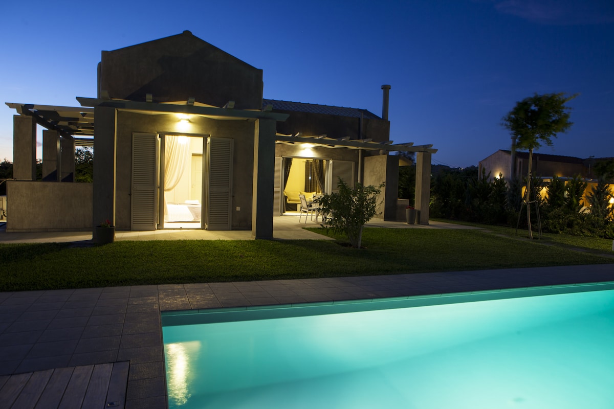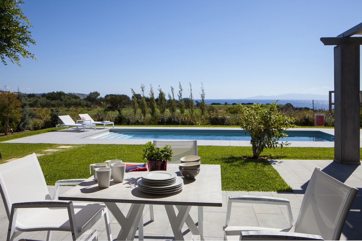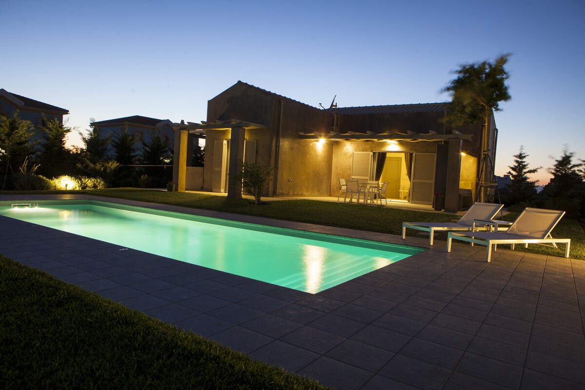 Villa Lefteris is set in a great location, within walking distance of local tavernas, shops and the two sandy beaches. This newly built, large modern one bedroom property has been styled and finished to a very high standard and sits within beautifully landscaped gardens. Villa Lefteris offers a spacious open plan and shabby chic design, offering beautiful pastel colours and wooden vaulted ceilings throughout. From the living area, patio doors lead out to a large covered terrace which overlooks the pool, the sea and surrounding countryside. The village of Svoronata sits on the coast surrounded by lush and unspoilt countryside, fields and orchards are abundant. In the village of Svoronata you will be charmed with the country paths offering a few local tavernas. There are also some Mini-markets, all situated within walking distance. The lovely beaches of Ammos, Ai helis and Avithos are all close by. Argostoli, the capital of the island, Lassi and the famous Makris Gialos beach, are all within a fifteen minute drive away from Villa Lefteris.Other things to note