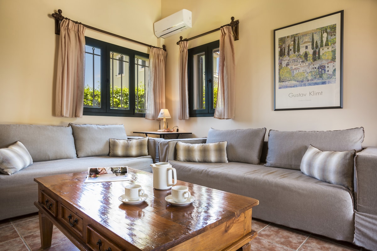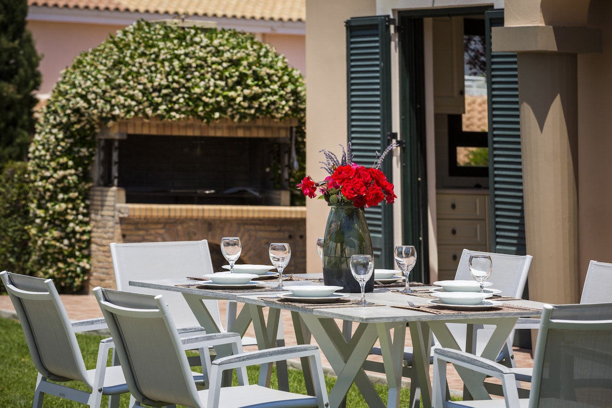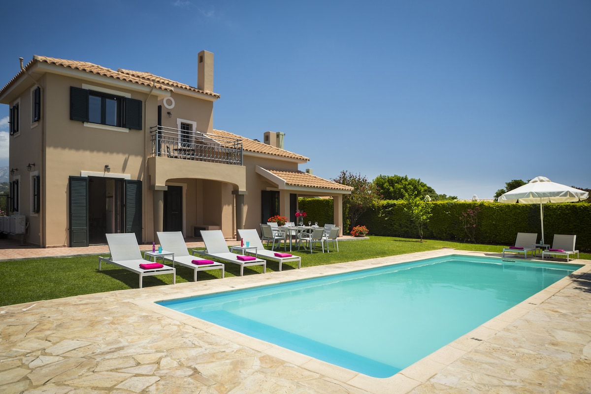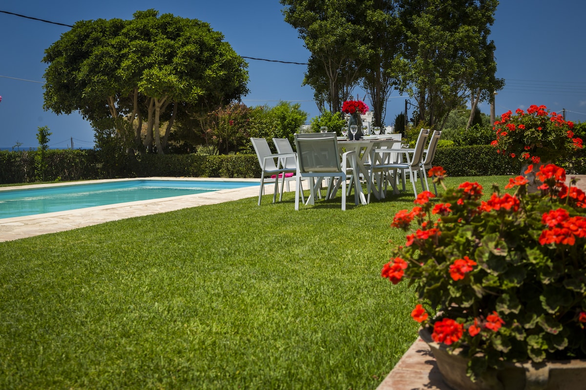 Villa Iro is situated only a few hundred metres away from the coast, offering wonderful views of the surrounding lush countryside and out to sea. Set in spacious and beautiful gardens, this stylish, modern property provides a convenient location close to a small selection of amenities. The selection of amenities can be found scattered around the neighbouring countryside, whilst two lovely sandy beaches can be reached within a short walk.