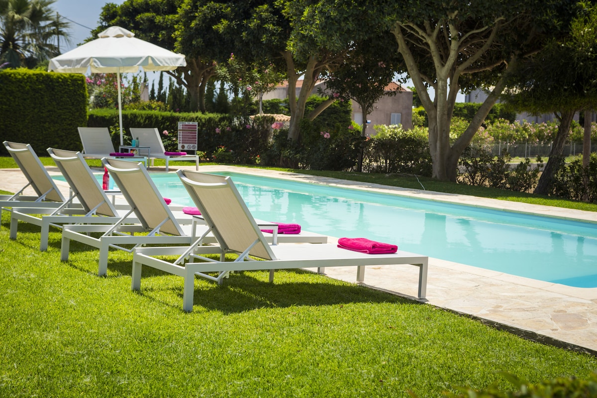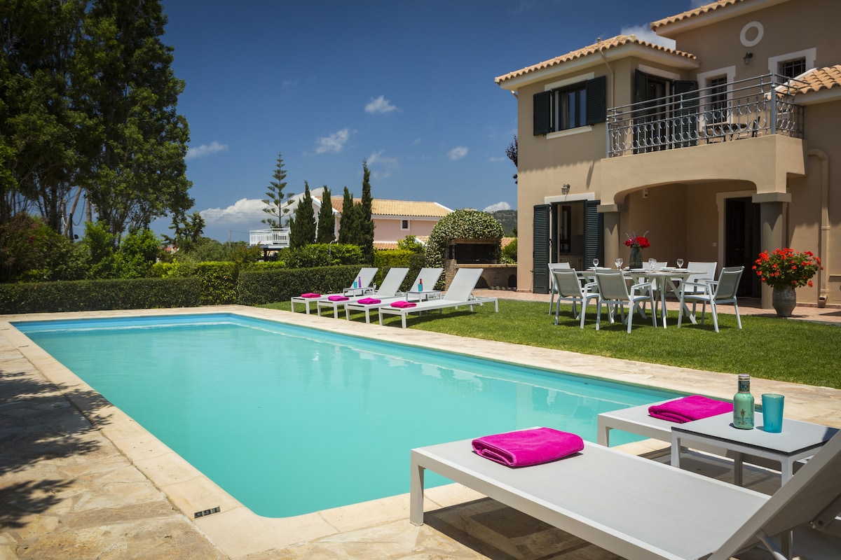 Villa Iro is situated only a few hundred metres away from the coast, offering wonderful views of the surrounding lush countryside and out to sea. Set in spacious and beautiful gardens, this stylish, modern property provides a convenient location close to a small selection of amenities. The selection of amenities can be found scattered around the neighbouring countryside, whilst two lovely sandy beaches can be reached within a short walk.Other things to note