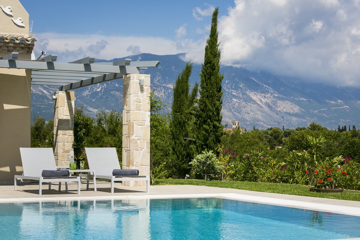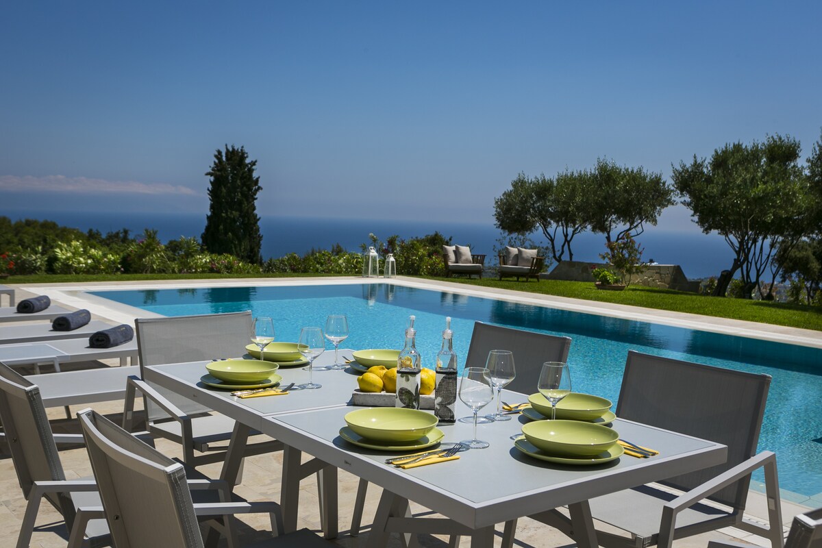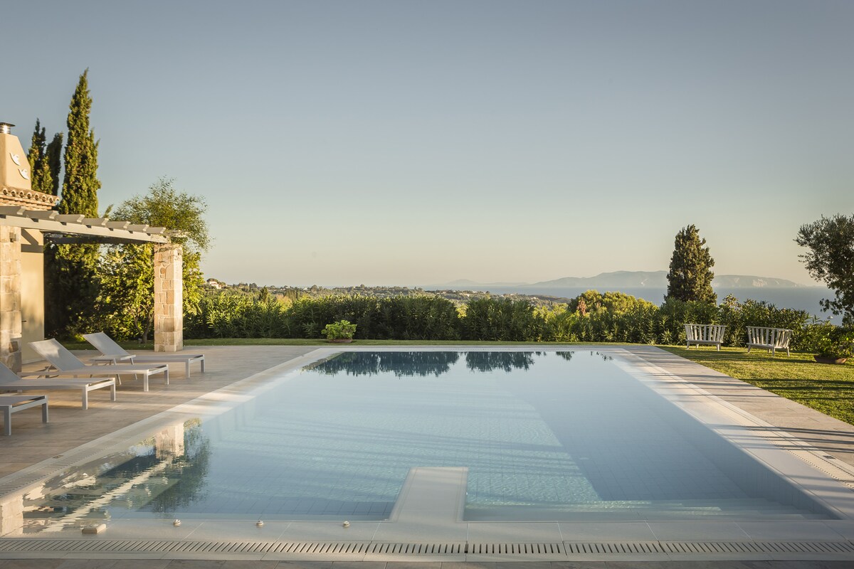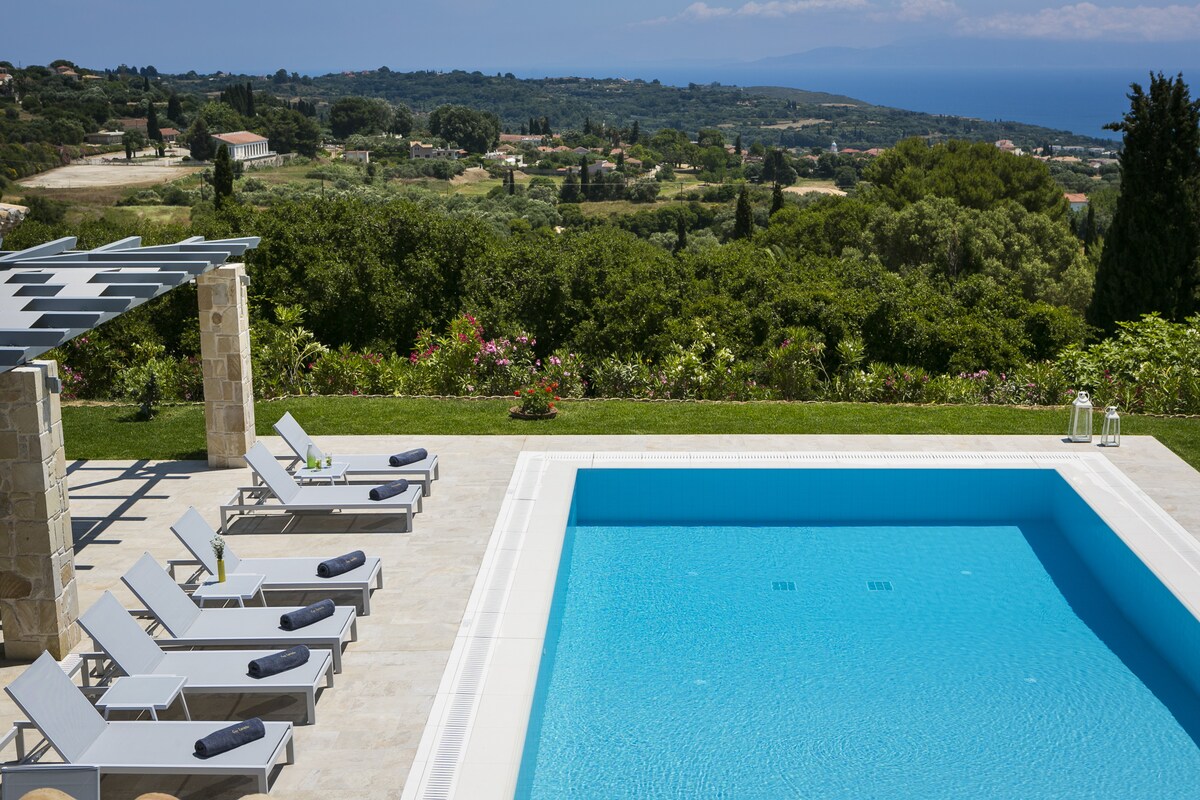 This stunning recently built villa brings a new meaning to luxury properties in Kefalonia. Set amongst large grounds in the tranquil Lakithrian countryside, Ylenia boasts breath-taking views across southern Kefalonia and out to the Ionian sea. The relaxing pool terrace is the perfect location to soak up the sun and enjoy the breath-taking views and gardens. It also has the added benefit of a safety pool alarm for families travelling with younger children.