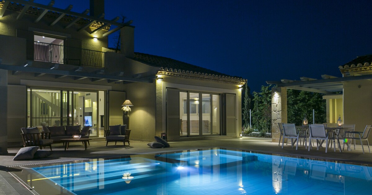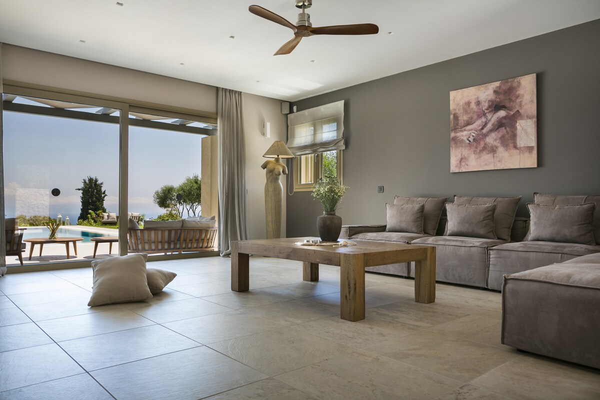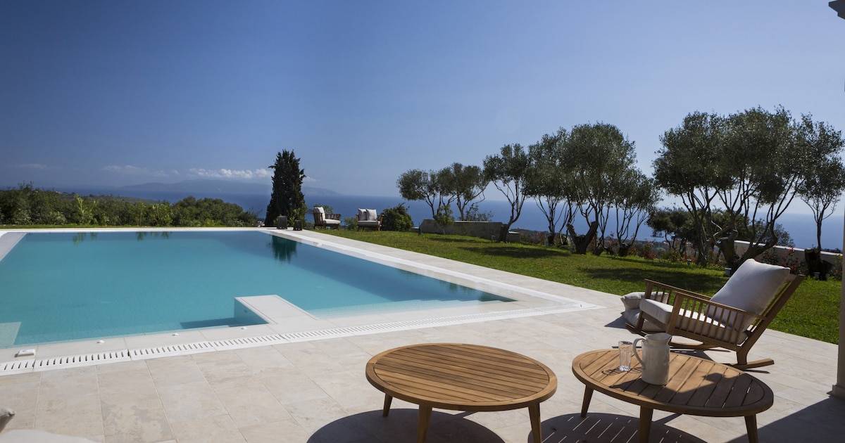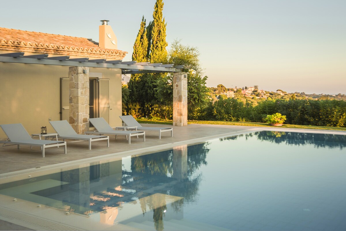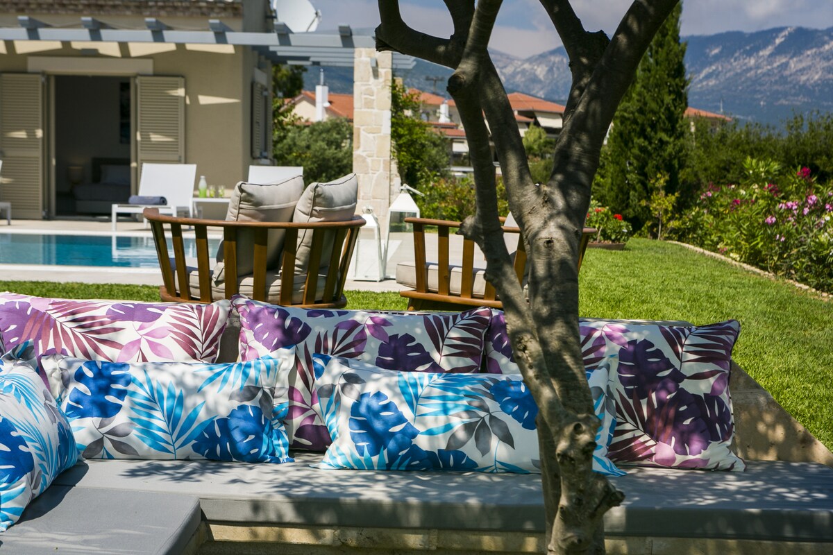 This stunning recently built villa brings a new meaning to luxury properties in Kefalonia. Set amongst large grounds in the tranquil Lakithrian countryside, Ylenia boasts breath-taking views across southern Kefalonia and out to the Ionian sea. The relaxing pool terrace is the perfect location to soak up the sun and enjoy the breath-taking views and gardens. It also has the added benefit of a safety pool alarm for families travelling with younger children.