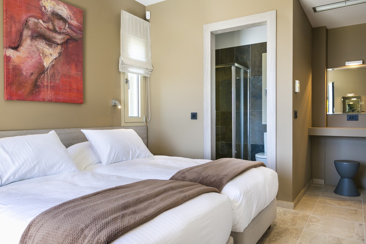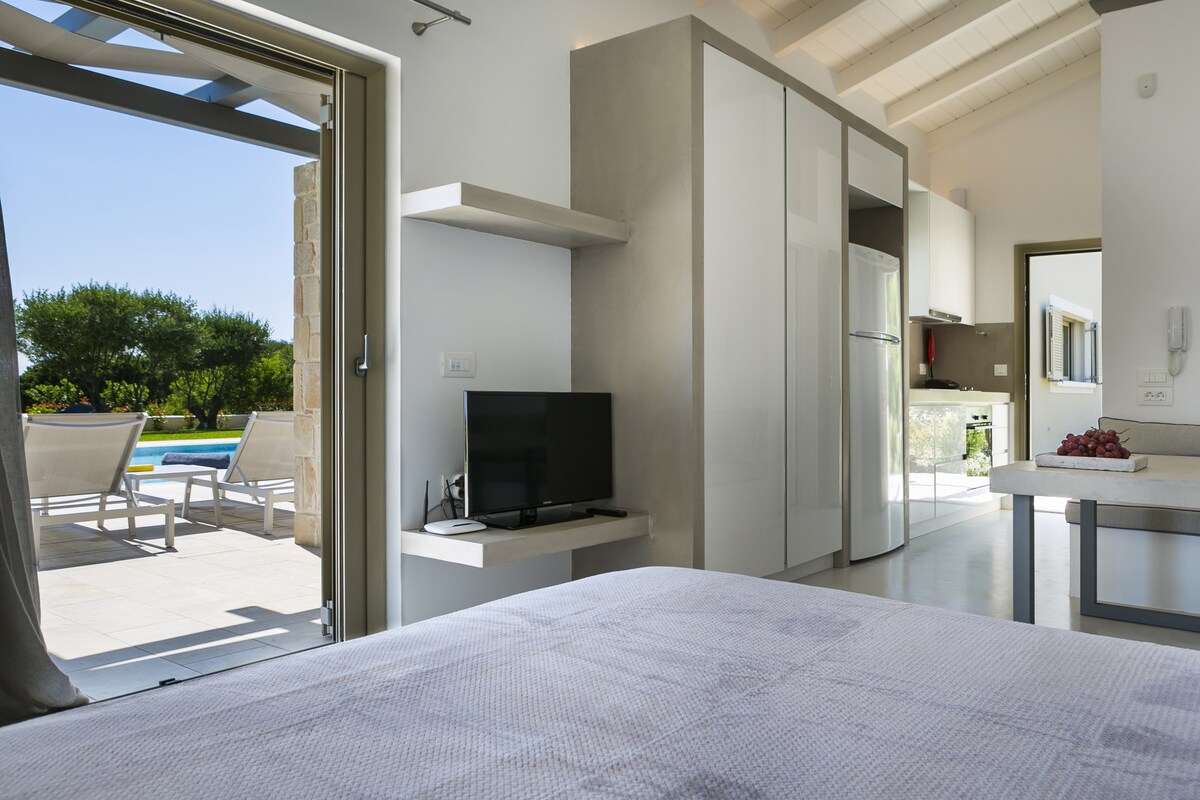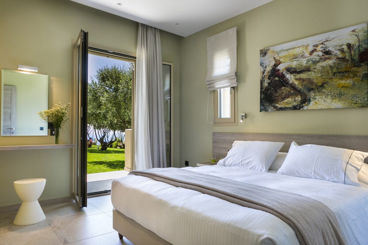 This stunning recently built villa brings a new meaning to luxury properties in Kefalonia. Set amongst large grounds in the tranquil Lakithrian countryside, Ylenia boasts breath-taking views across southern Kefalonia and out to the Ionian sea. The relaxing pool terrace is the perfect location to soak up the sun and enjoy the breath-taking views and gardens. It also has the added benefit of a safety pool alarm for families travelling with younger children. Designed, furnished and styled to an exceptionally high standard throughout, this luxury villa offers that extra special villa holiday experience. Villa Ylenia has been designed and built in order to achieve the most of the surrounding stunning views. Its’ design, features large windows and patio doors that overlook the pool, gardens and out across to the neighbouring island of Zakynthos. On the ground floor you will find an open plan and spacious layout with a high spec finish throughout with a fully equipped kitchen and living room. There is also one bedroom with ensuite bathroom and walk-in wardrobe. This makes it ideal for guests with walking disabilities. On the ground floor, you will also find a seperate annex consisting of one bedroom with ensuite bathroom, a small lounge and a fully equipped kitchen. This annex overlooks the swimming pool and gardens. This is ideal for families travelling with relatives and/or requiring seperate nanny accomodation. This is also ideal for guests with walking disabilities. On the first floor there are two spacious bedrooms with ensuite bathrooms with a verandah/balcony overlooking the picturesque views of the Ionian sea, gardens and swimming pool. The swimming pool and jacuzzi (within the swimming pool) benefit from the use of hypo-allergenic products, and is surrounded by immaculately kept gardens. There is ample and comfortable seating placed all around the villa grounds. It makes it ideal for relaxing, dining and enjoying the wonders of this property and its gardens. The quaint little village of Lakithra can be found within a 10 minute walk, where you find a few local amenities, including a mini-market, a few bars and some tavernas. For a wider selection of amenities, the island’s capital Agrostoli and the larger resort of Lassi, are located 10 minutes away by car. For the beach lovers, the beaches of Ai-Helis, Avithos, Ammes and Mines are only a 10 minute drive away from Villa Ylenia.Other things to note