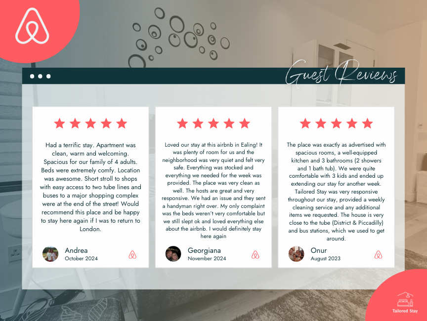 Loved our stay at this airbnb in Ealing! It was plenty of room for us and the neighborhood was very quiet and felt very safe. It was the cutest little street and community. It was a little walk to the train station and had restaurants and stores a long the way. Everything was stocked and everything we needed for the week was provided. The place was very clean as well. The hosts are great and very responsive. We had an issue and they sent a handyman right over. My only complaint was the beds weren’t very comfortable but we still slept ok and loved everything else about the airbnb. I would definitely stay here again