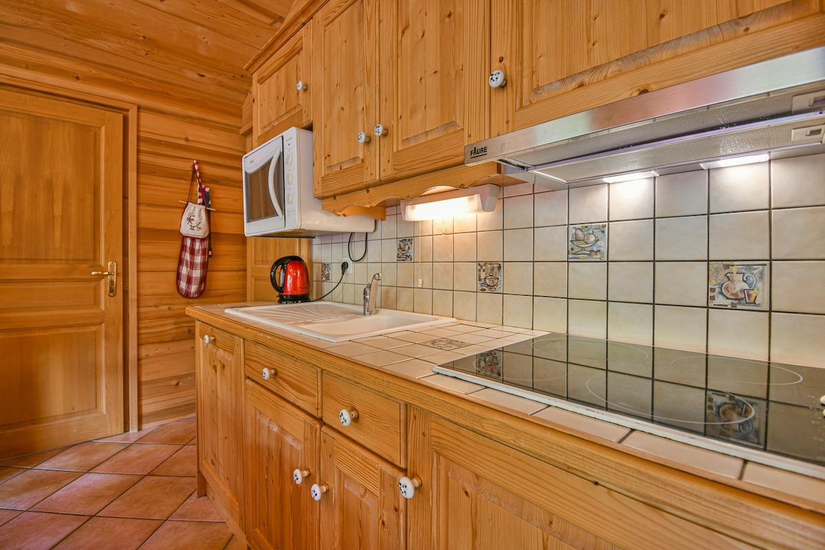- A fully equipped open kitchen with a ceramic hob, oven, refrigerator, dishwasher, toaster, coffee maker, and raclette machine