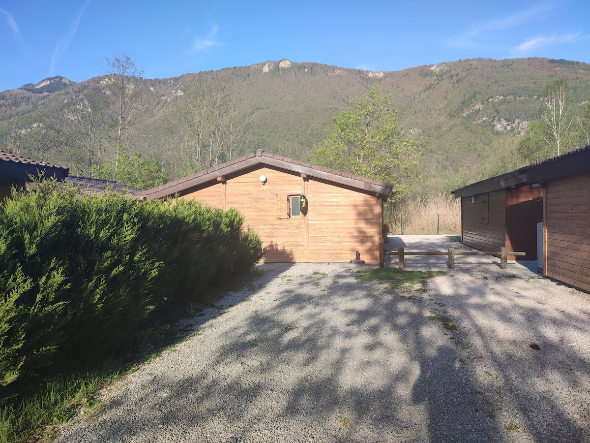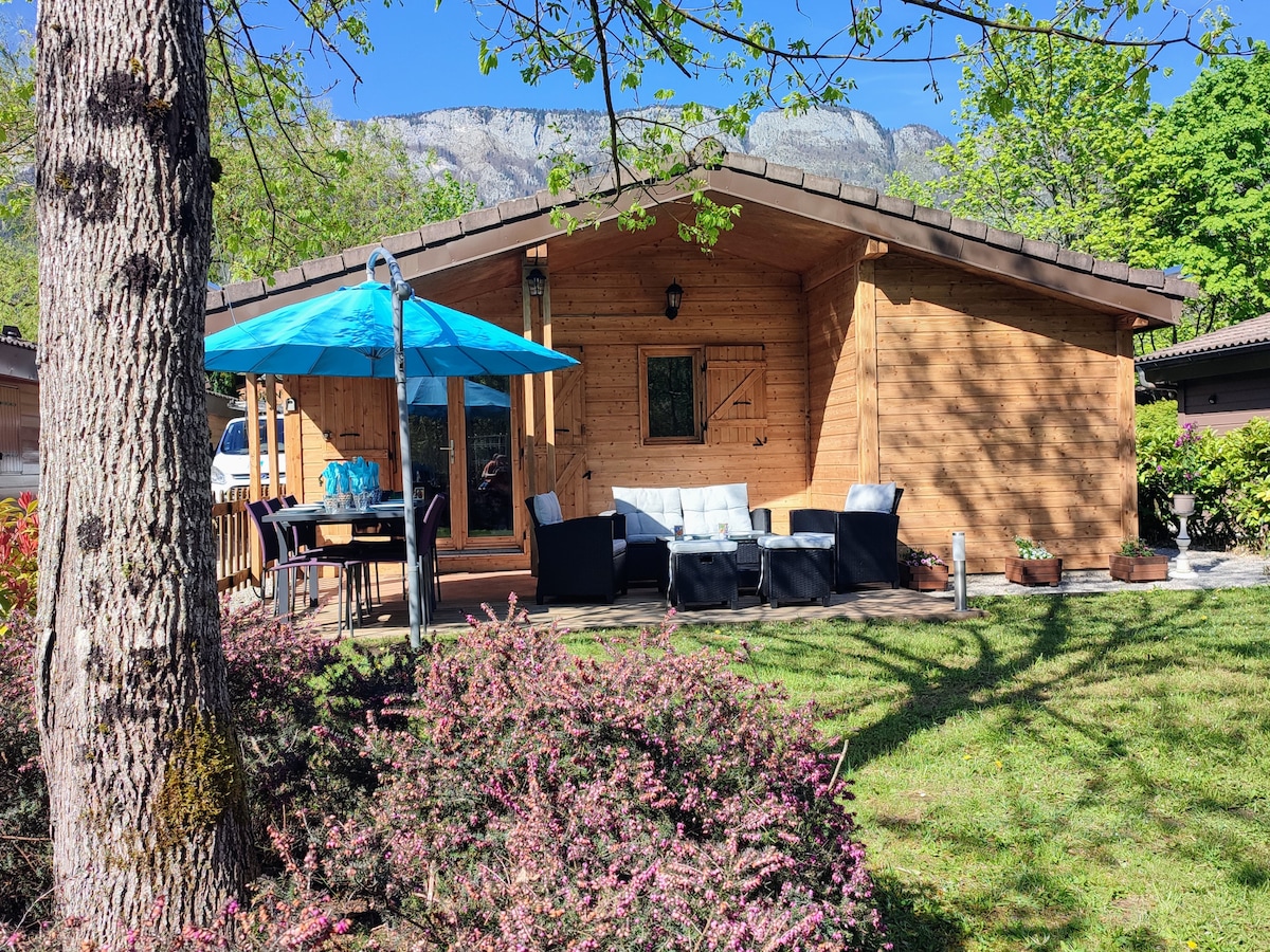 A charming, cosy, chalet cabin, set in a tranquil location, set on the banks of Lake Annecy, overlooking the nature reserve and local mountains.The cabin is situated on the tree lined grounds of the campsite 'Camping Sandaya La Nubliere'.