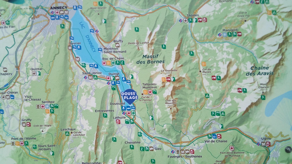 Annecy town and historic village 18km away, there is a cycle lane and regular boat ferry to and from Annecy town which leaves the Doussard Port