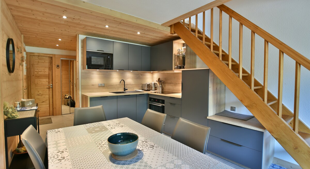 Great stay in Cornillon! The accommodation is pretty, convenient and comfortable, 600m from the ski lifts within walking distance by a charming little path between the chalets. We spent a week with family with 4 adults and 2 children, we enjoyed the presence of baby equipment (bed and chair) and we were not cramped! The kitchen was also very well equipped. The view of the Aravis from the living room and balcony is stunning! Please note, however, many stairs between the parking lot and the apartment (on the 3rd floor) do not allow access to the accommodation by stroller.