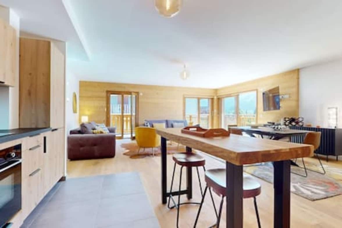 We had a great time in this apartment. The living room is very large (we were 3 adults and 3 children). The location is perfect since the apartment is in the immediate vicinity on foot from the center of Samoëns (restaurants, shops...). The balcony is very nice and the view is splendid. Close to Samoëns by car (about ten or twenty minutes) there are many hikes to do. I highly recommend this place.