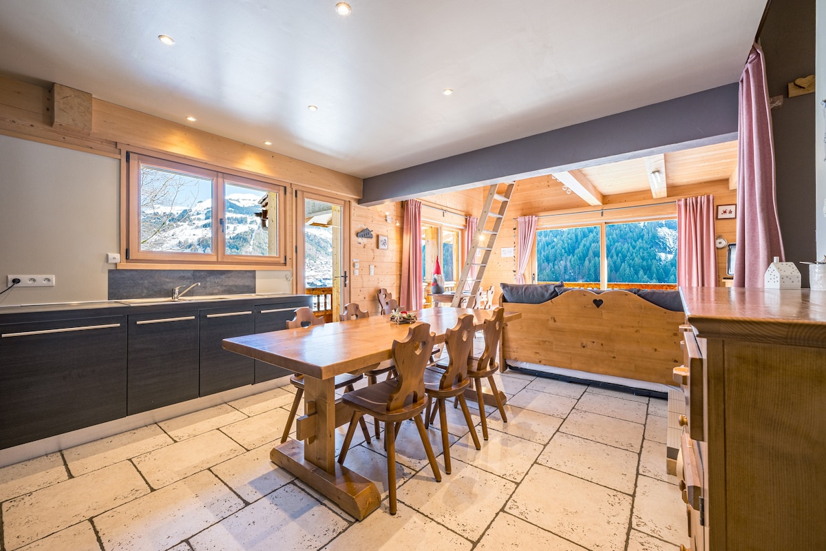 Located in a quiet, south-facing neighborhood, this chalet also offers a beautiful panoramic view of the village, the Aravis mountain range, and La Tournette.