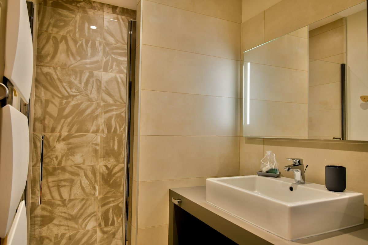 - A master bedroom with a queen-size bed (160x200) and en-suite bathroom