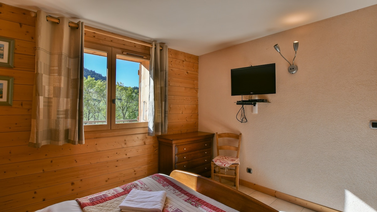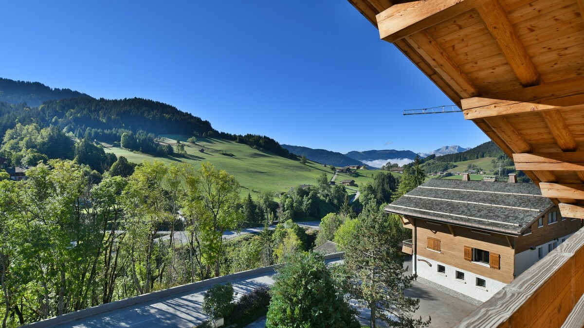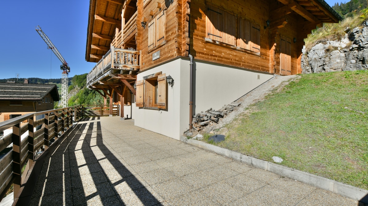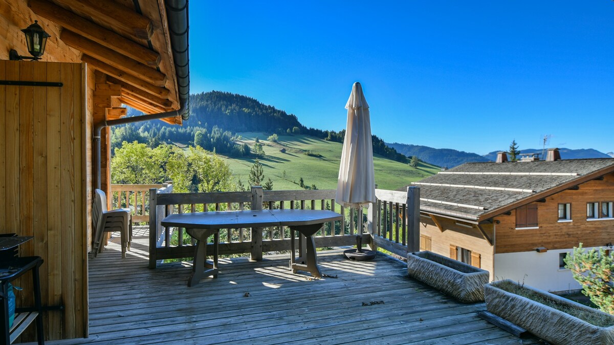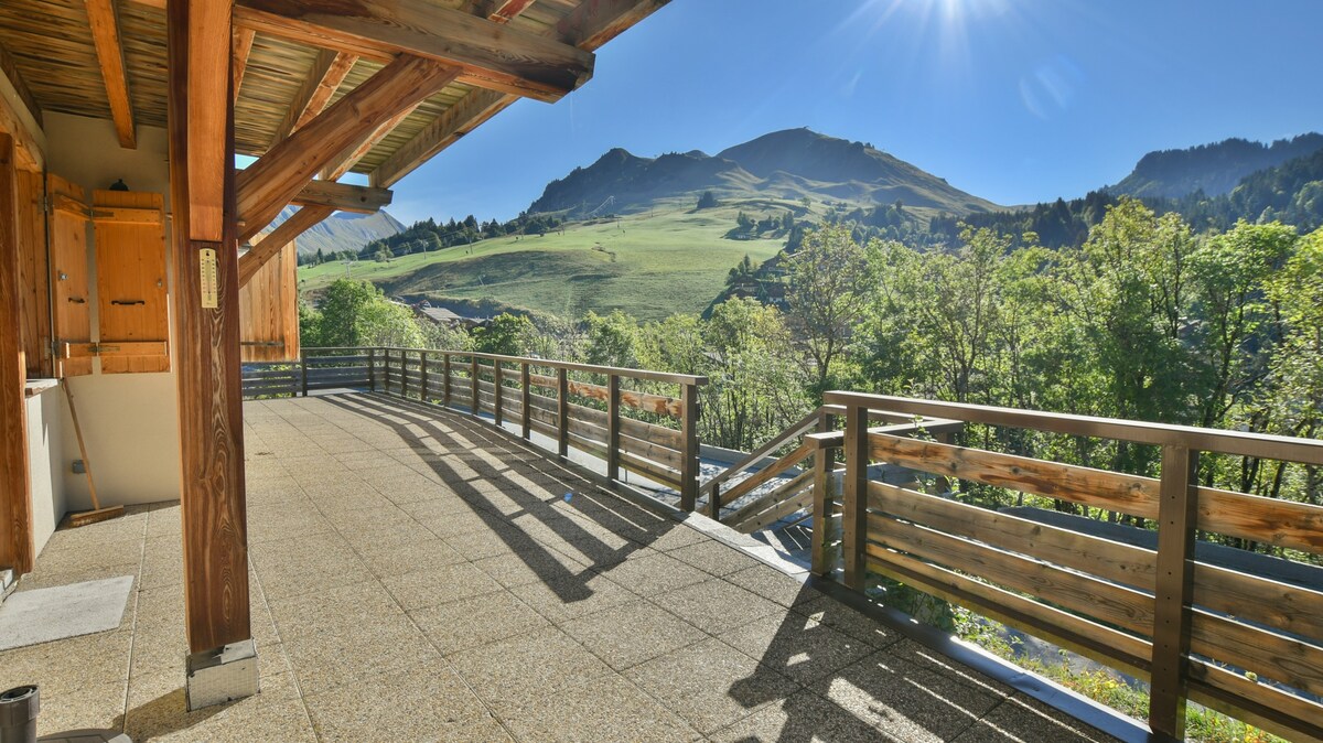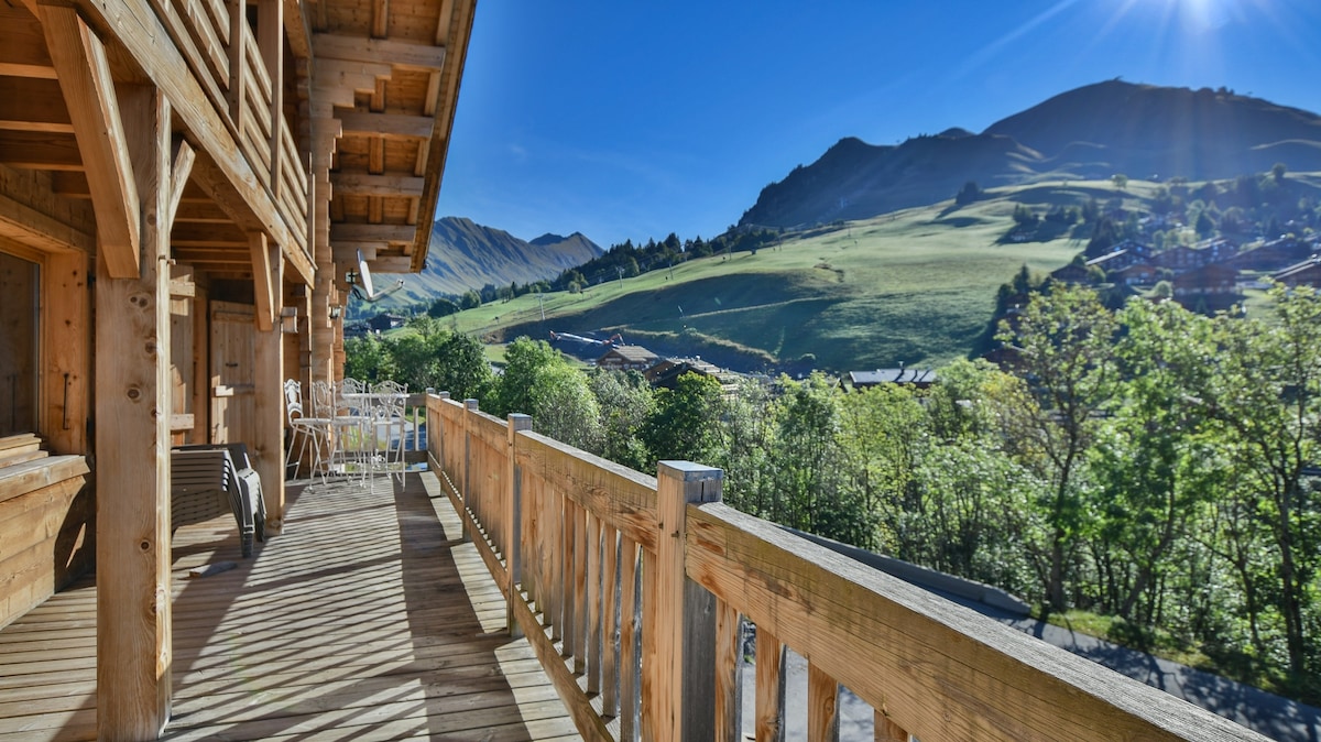 The chalet has balconies and a sunny terrace with magnificent views of the surrounding mountains and slopes.