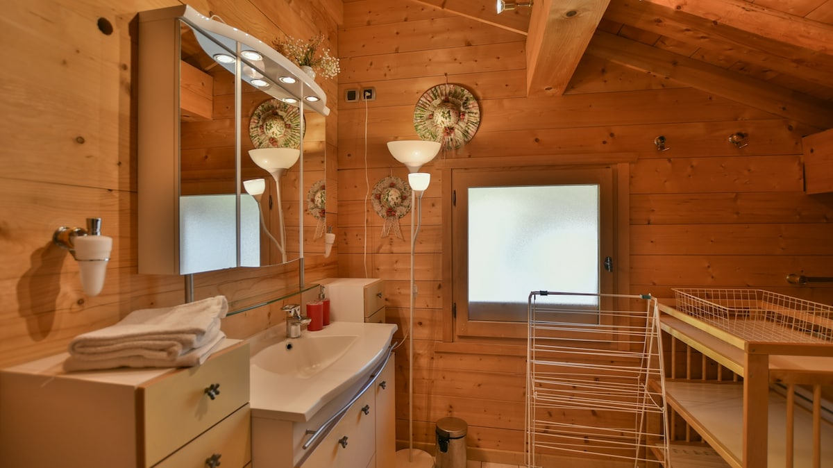 The chalet is located 1 km from the ski slopes, 170 m from the shuttle bus stop, and 650 m from the village.