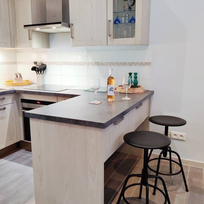 The fully equipped kitchen has a dishwasher, oven, hob (4 burners), microwave, fridge with freezer and washing machine and everything you need to prepare your meals at home. You will find a separate tumble dryer in one of the bathrooms, and there is also a clothes rack.