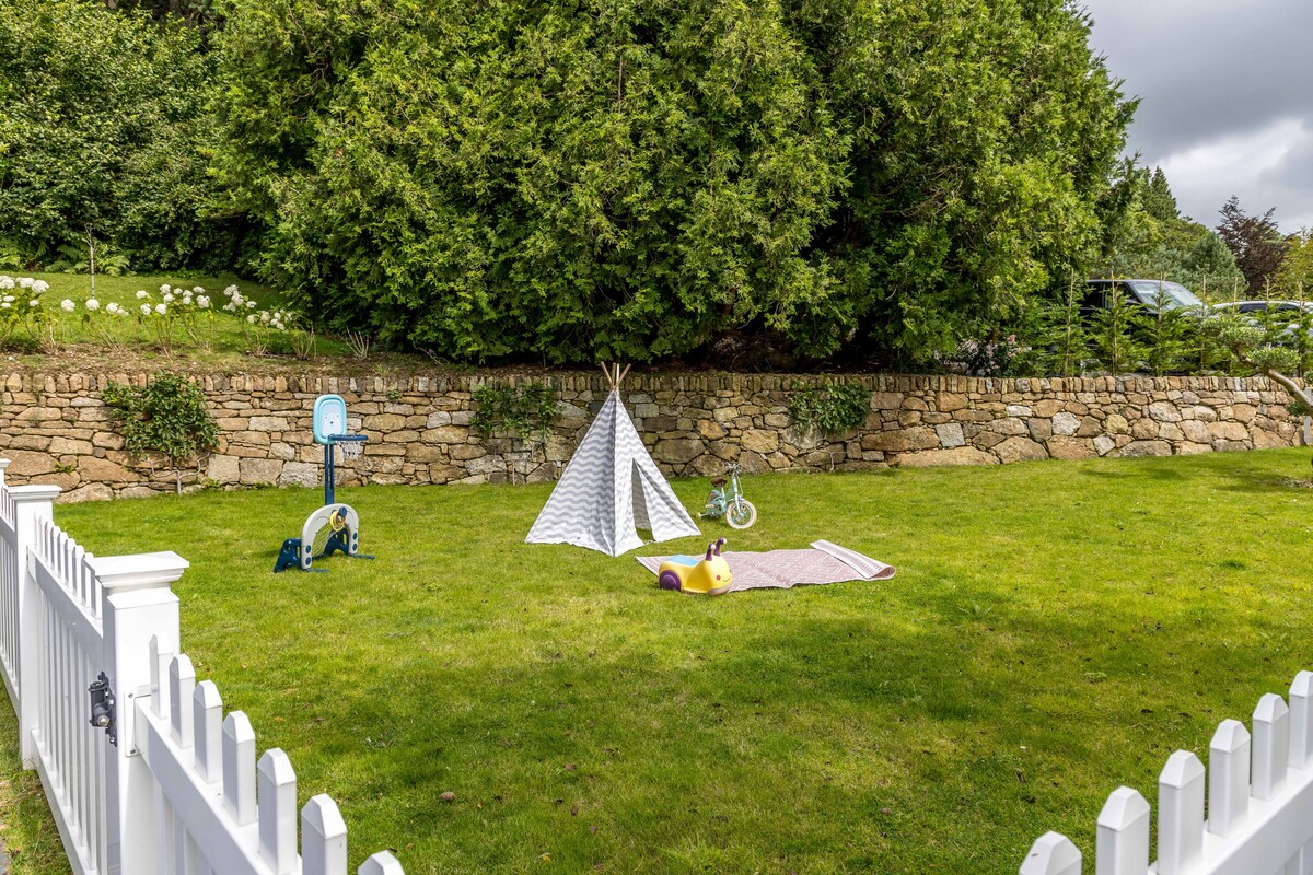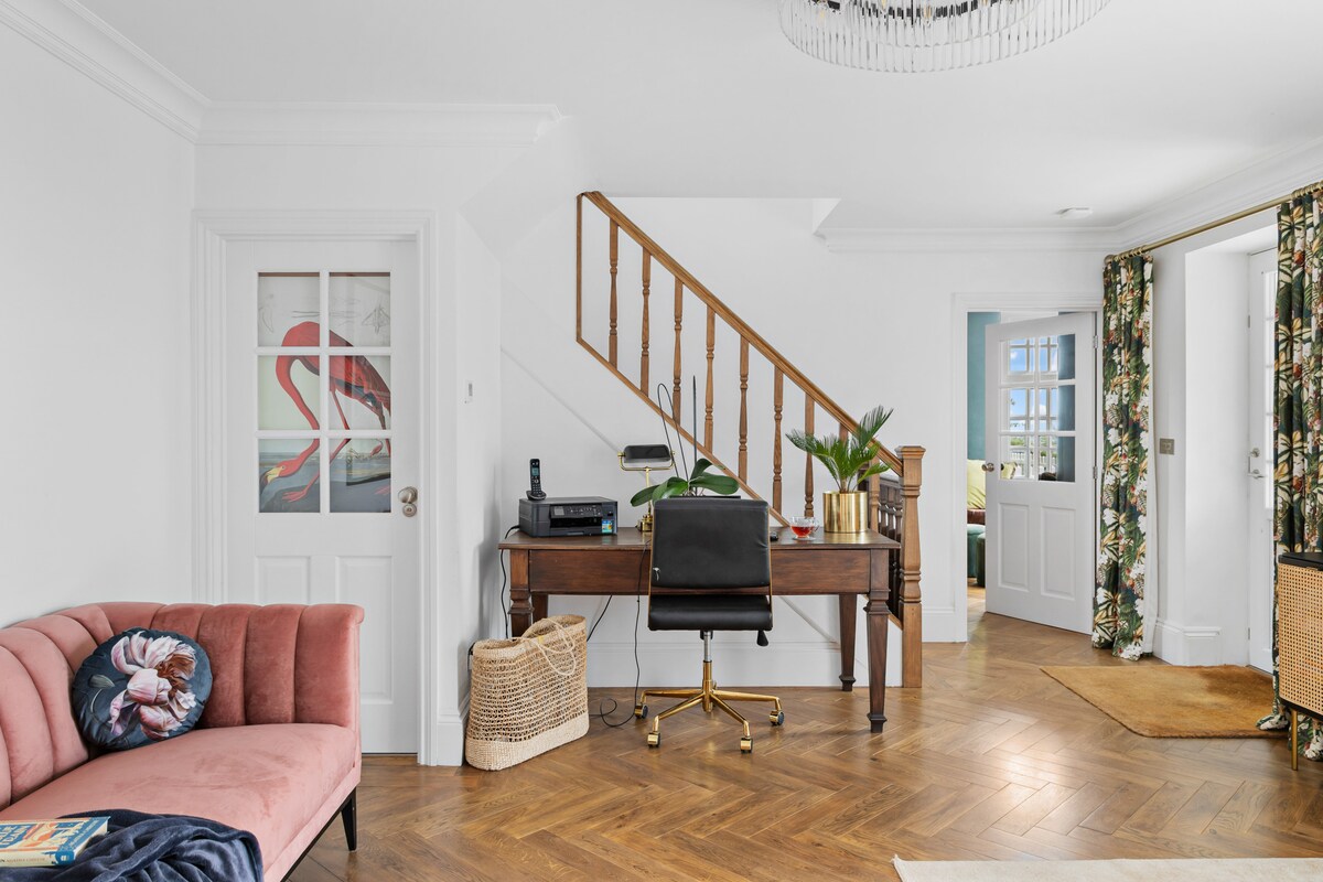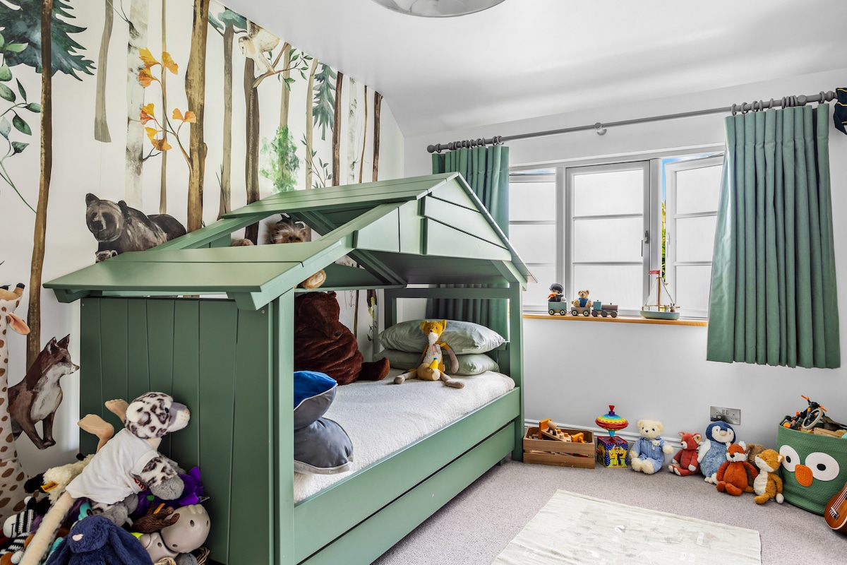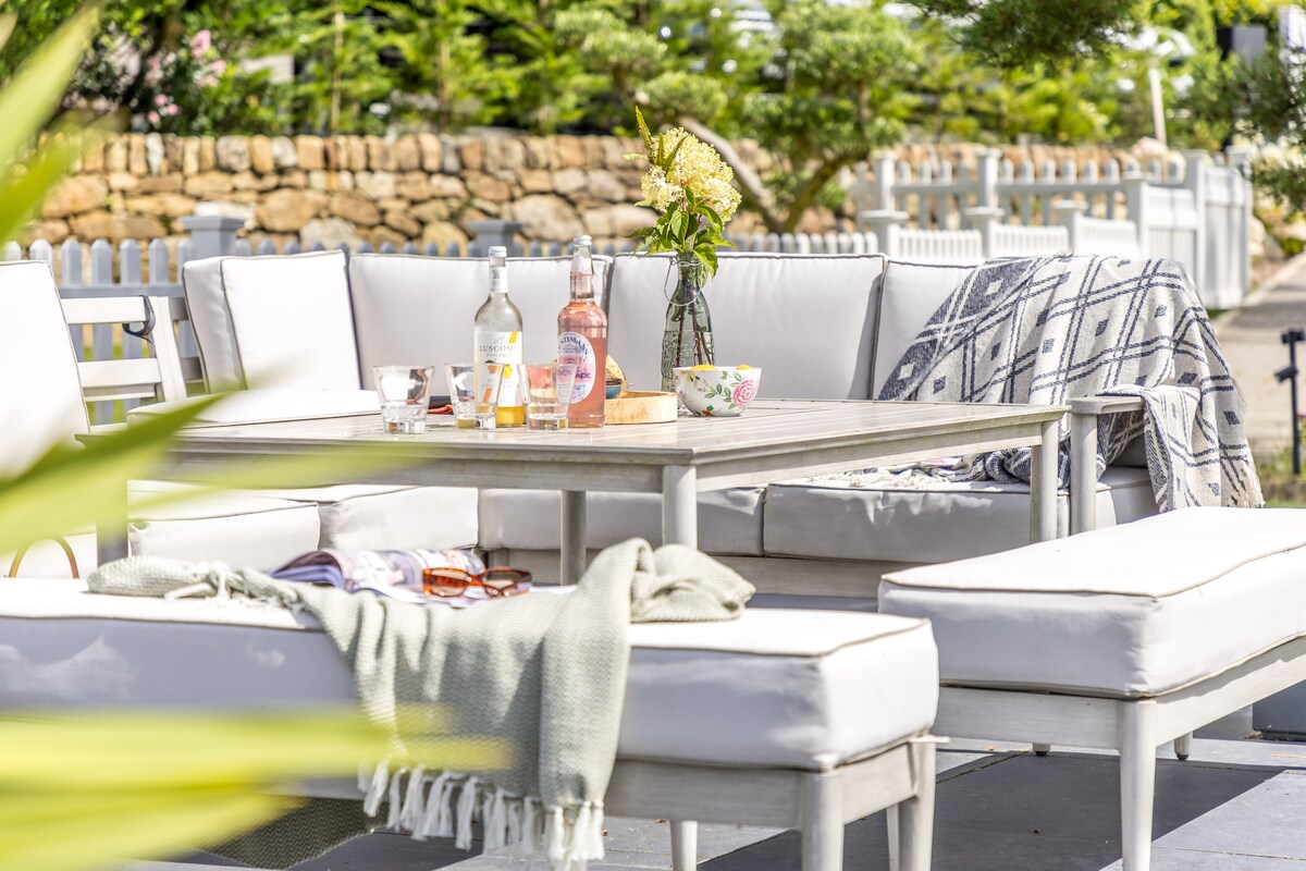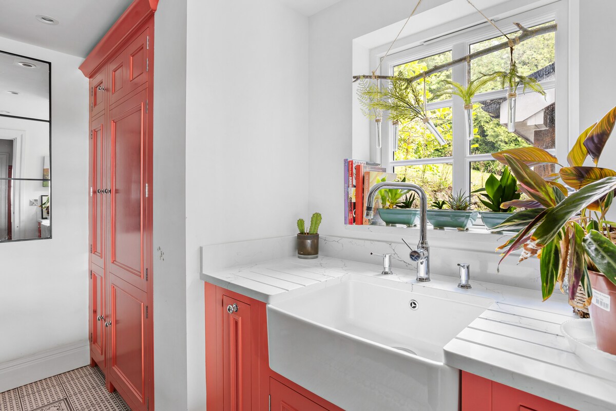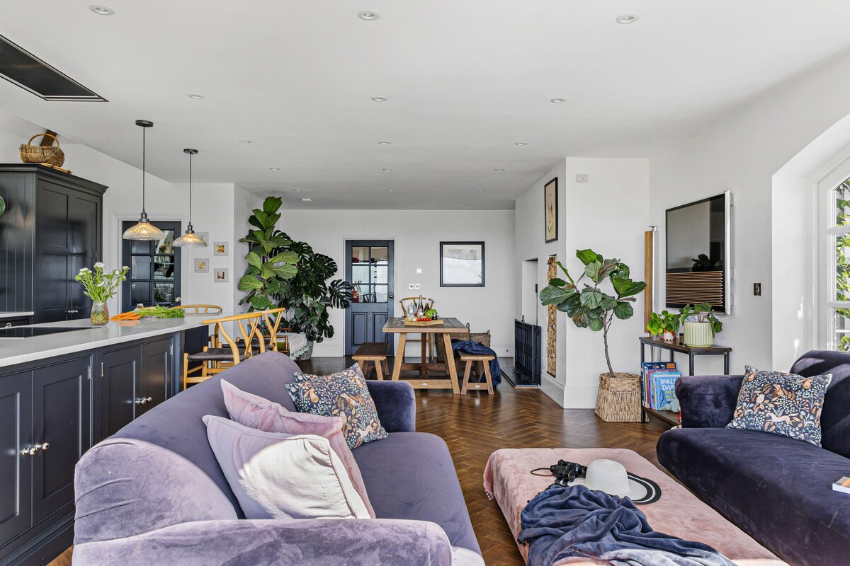 Nestled on a tranquil hilltop, Fox Hill House is a luxurious retreat for up to eight guests. This four-bedroom Edwardian-style gem blends timeless elegance with contemporary flair, ideal for family gatherings and intimate celebrations.