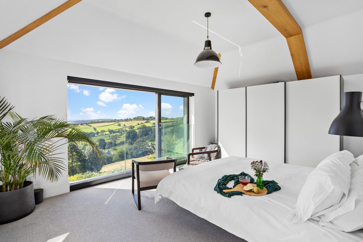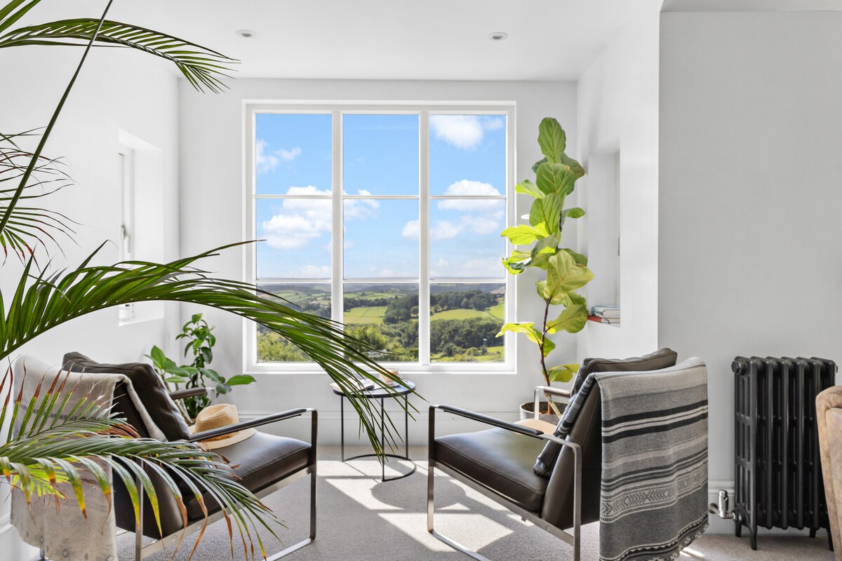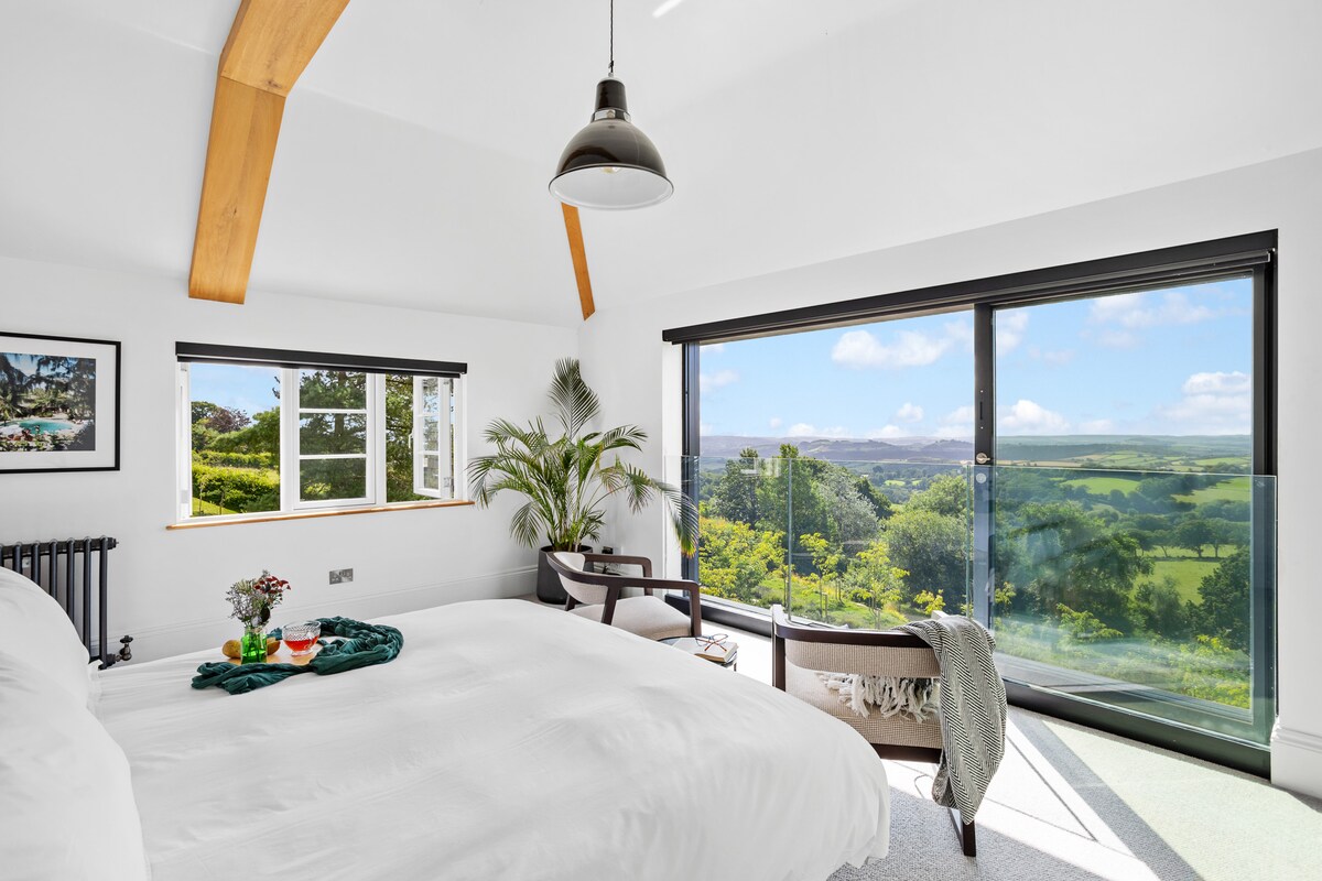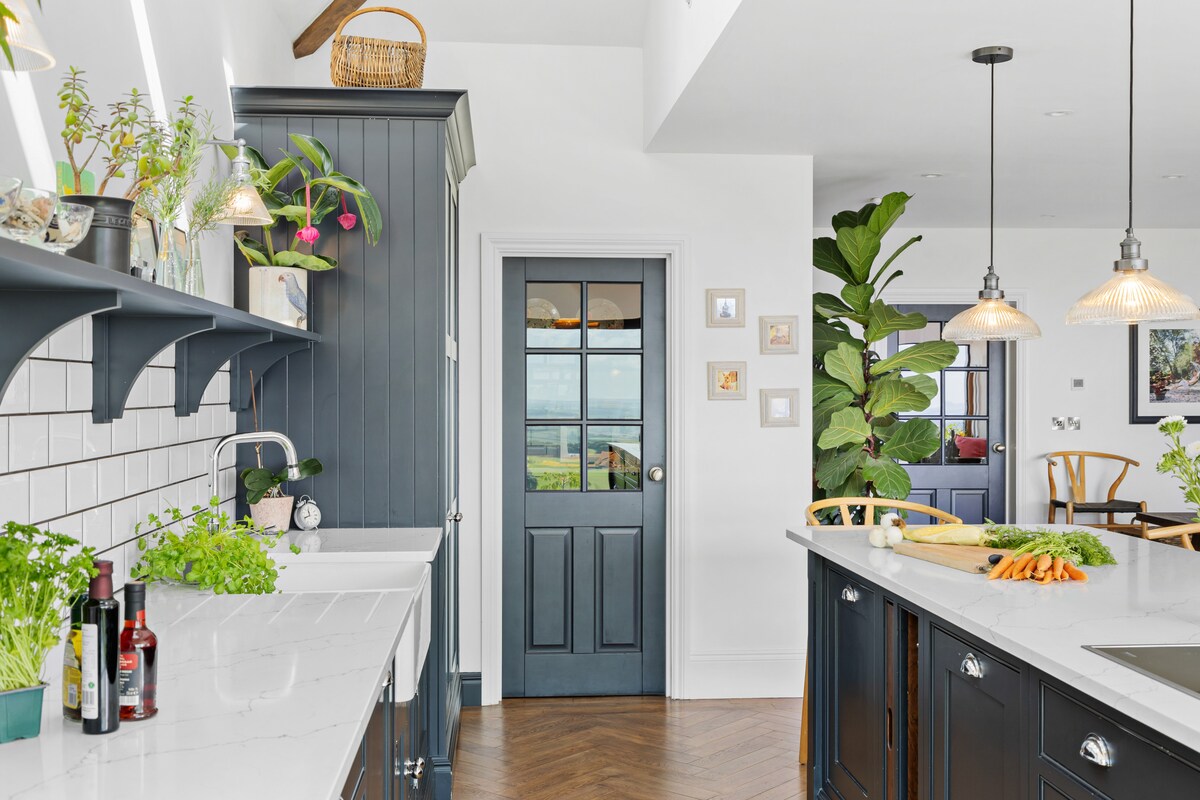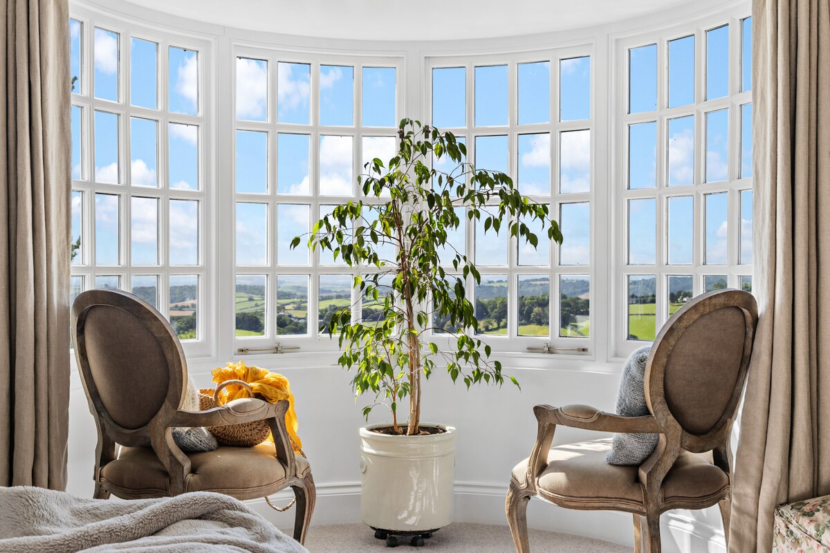 Step into Fox Hill House, where classic Edwardian design blends effortlessly with contemporary elegance. The grand entrance hall, with views over rolling Devon hills, sets the tone for a luxurious stay. Inside, jewel-toned velvets and modern Victoriana accents create sumptuous living spaces, perfect for discerning guests.