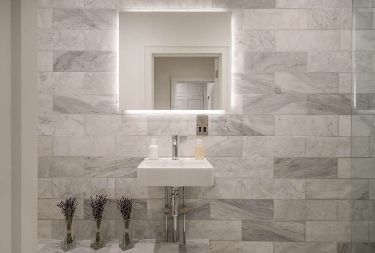 The French grey kitchen is equipped for both relaxed evenings in and extended corporate stays. Highlights include: