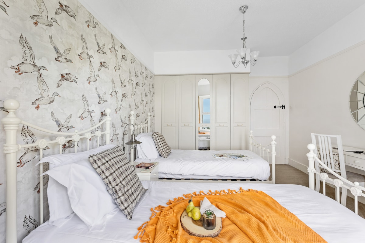 Out of all the Air B n Bs / hotels I have stayed in, this was the most accurately pictured and described place. The property was magnificent with lovely detail, great views, a great old English feel and really added to a trip I had with friends. James and the other people I communicated with were understanding, quick in their responses and helpful. The place is about a 20 minute walk to the beach / centre of town and it’s an easy walk, basically just heading down one long road. There is a Tesco superstore nearby for anything you need. I would recommend the George and Dragon pub in town and the whetherspoons is also good. Book this place and have fun!