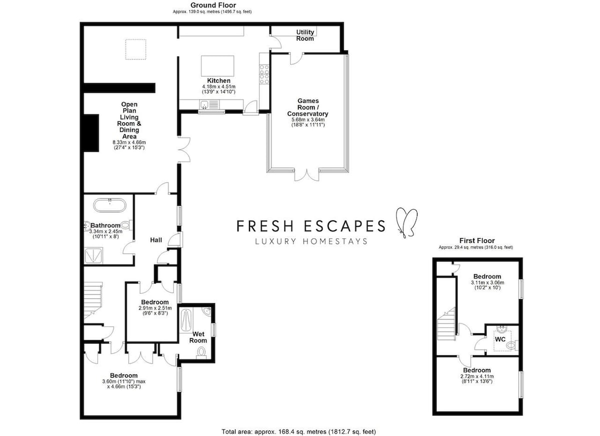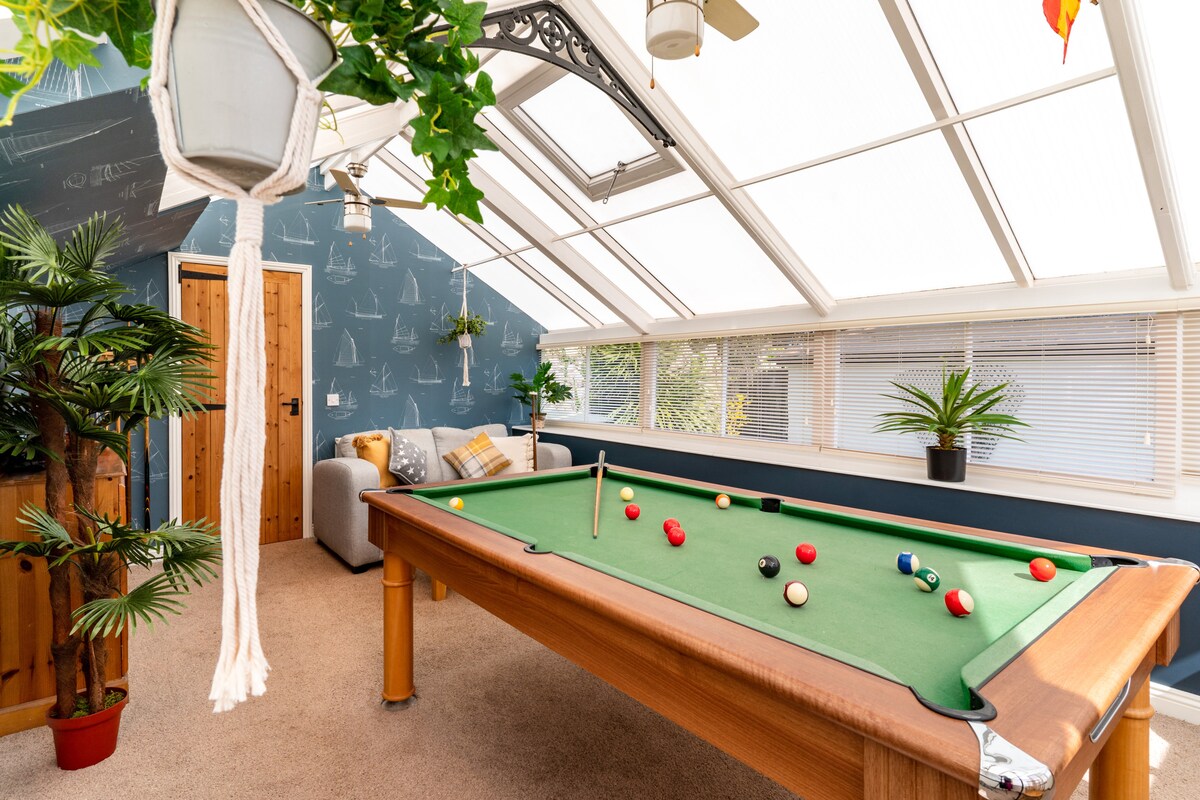 Every child’s dream is situated in the conservatory next door: the games room is equipped with a pool table, table skittles, Xbox One and Ps4 consoles and an array of board games and puzzles to keep everyone busy while the adults relax outside or in the lounge.