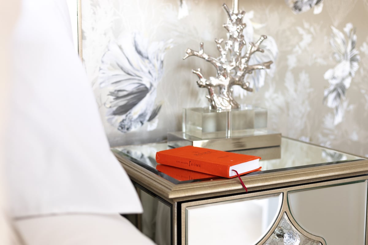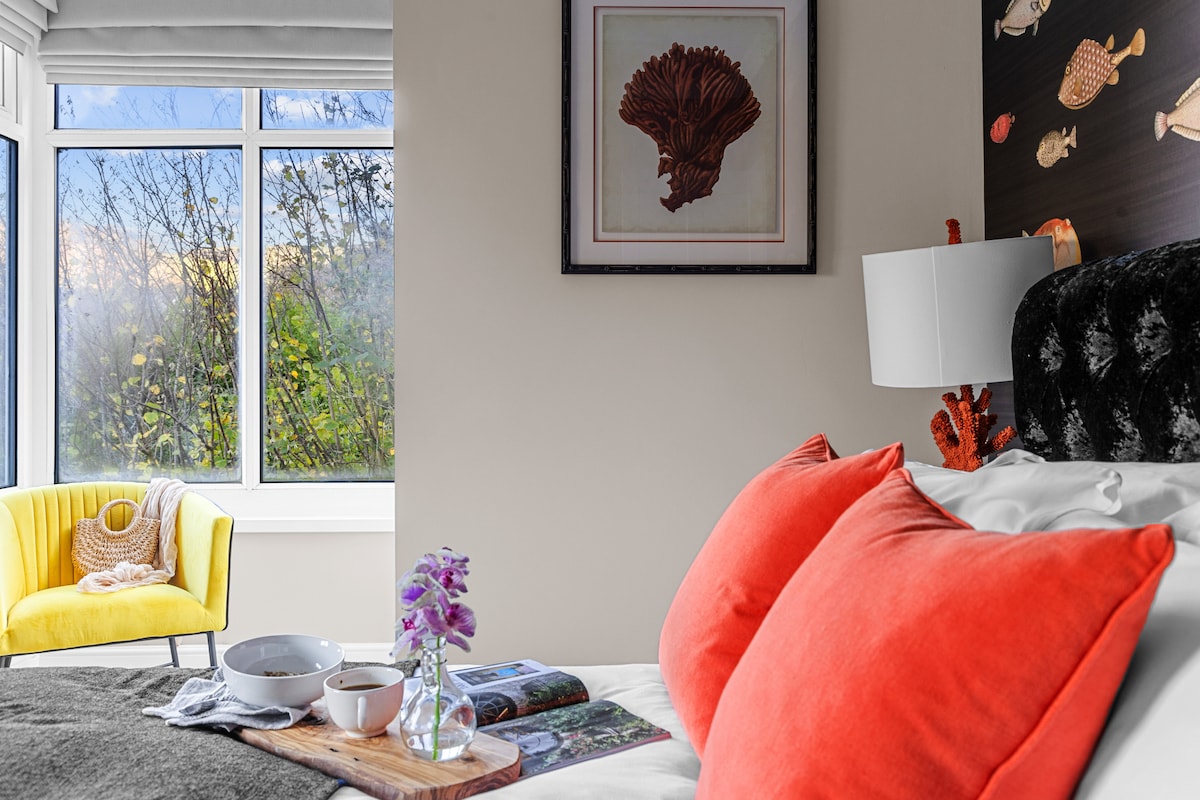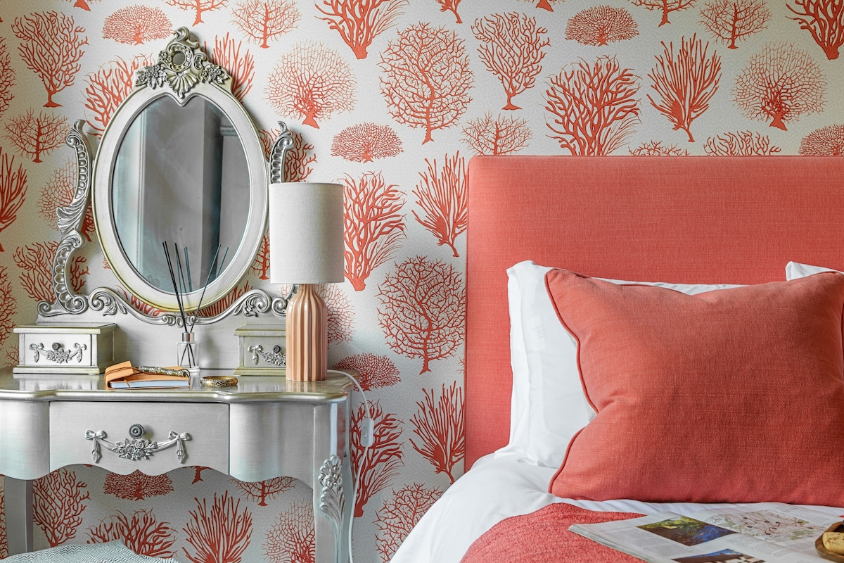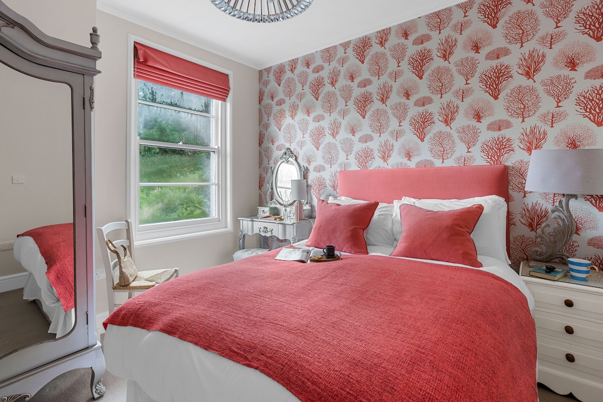 - Double Bedroom – Vibrant red accents and elegant modern furnishings.