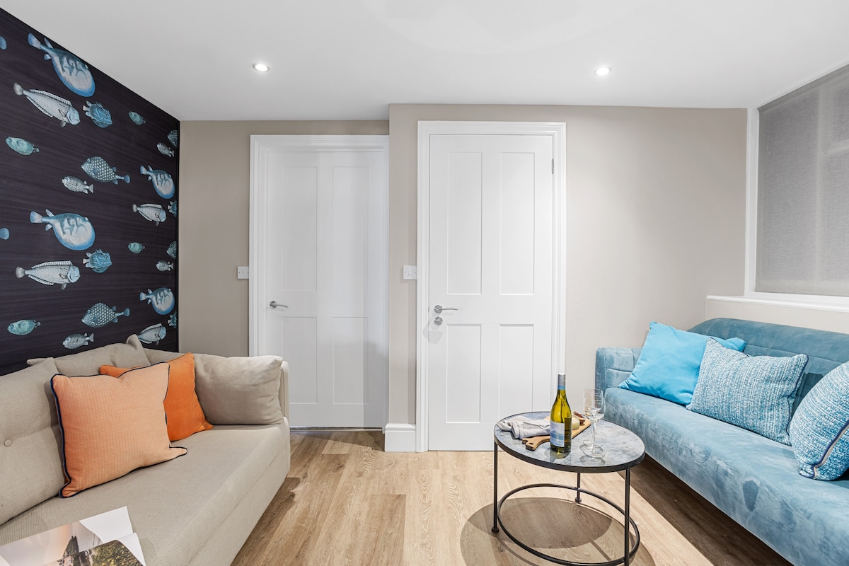 Snug Room – Calm earthy tones, two sofas, adjacent cloakroom, and utility room—ideal for quiet reading or cosy downtime.