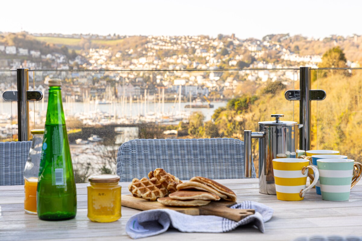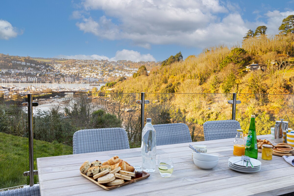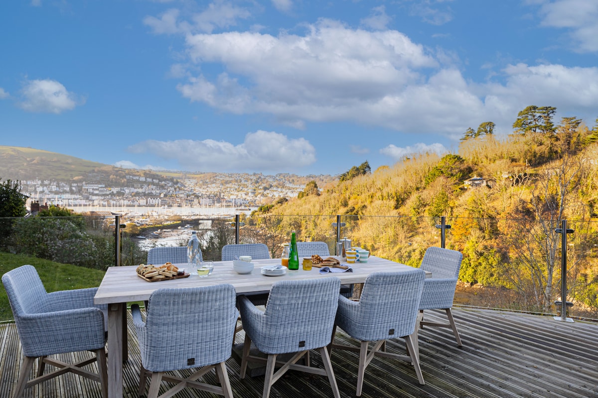 - Lower terrace seating overlooking the splendour of the Dart estuary