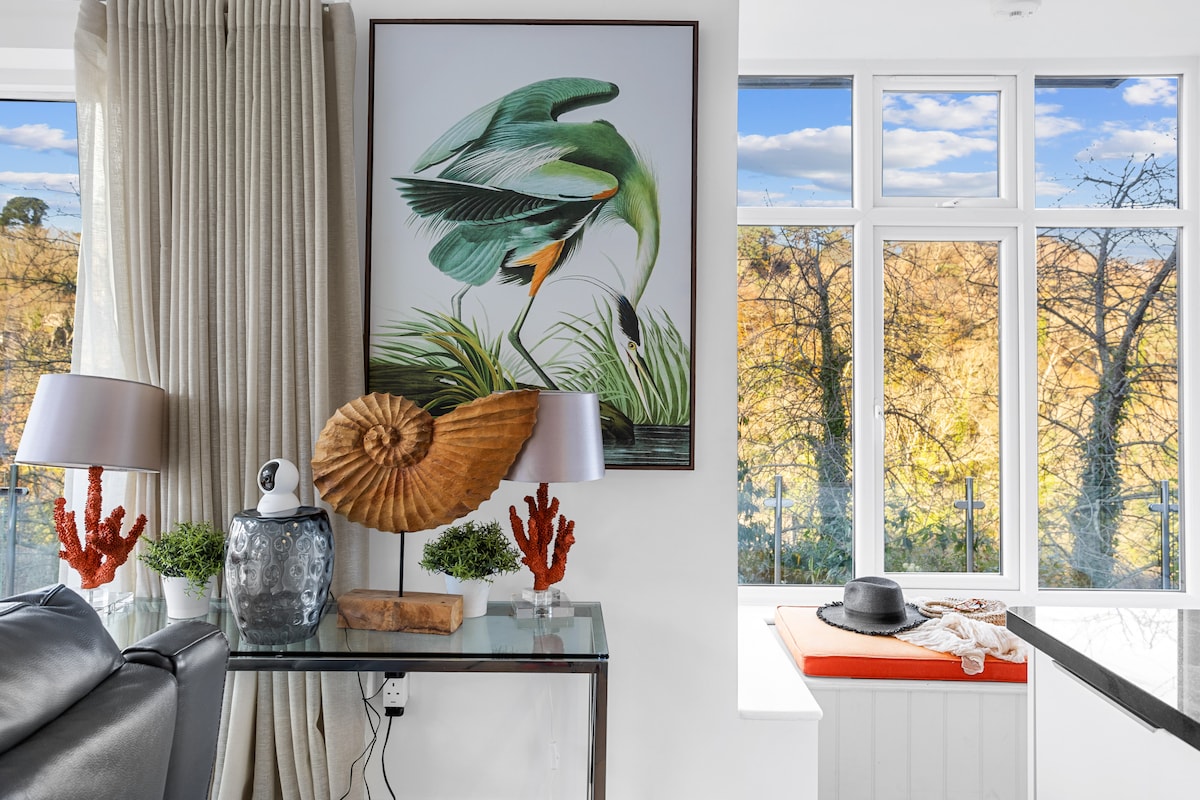 The main open-plan living area is framed by dual-aspect glass walls, skylights, and uninterrupted valley views. State-of-the-art air conditioning ensures comfort during warm summer days, while seamless indoor-outdoor flow invites guests to dine, relax, and socialise in style.